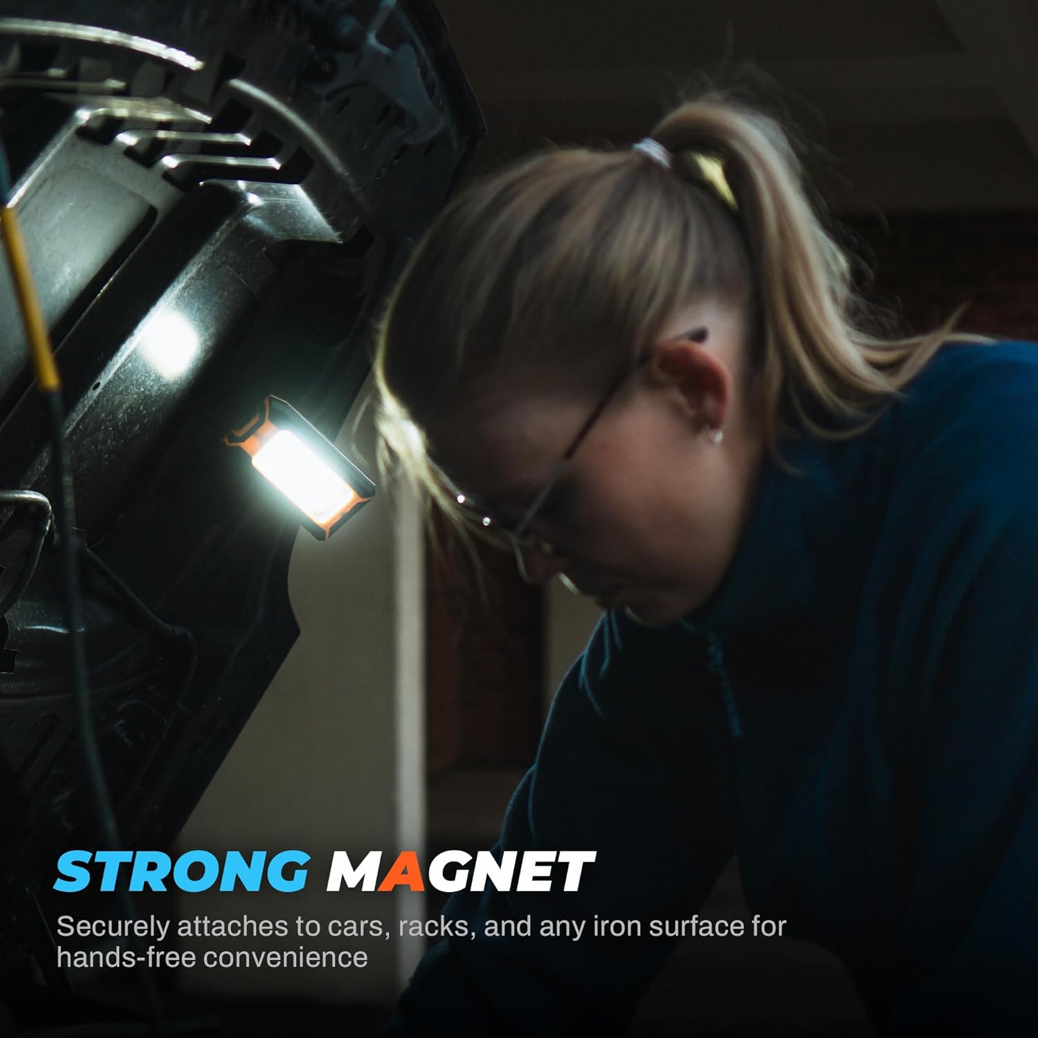 - 【Rugged Build for Tough Jobs】Built with industrial-grade plastic and rugged aluminum alloy, this magnetic work light rechargeable LED passes a 5ft drop test, ensuring it withstands tough jobs. Perfect for working on vehicles, tackling repairs under the hood, or handling tasks in the attic and crawl spaces