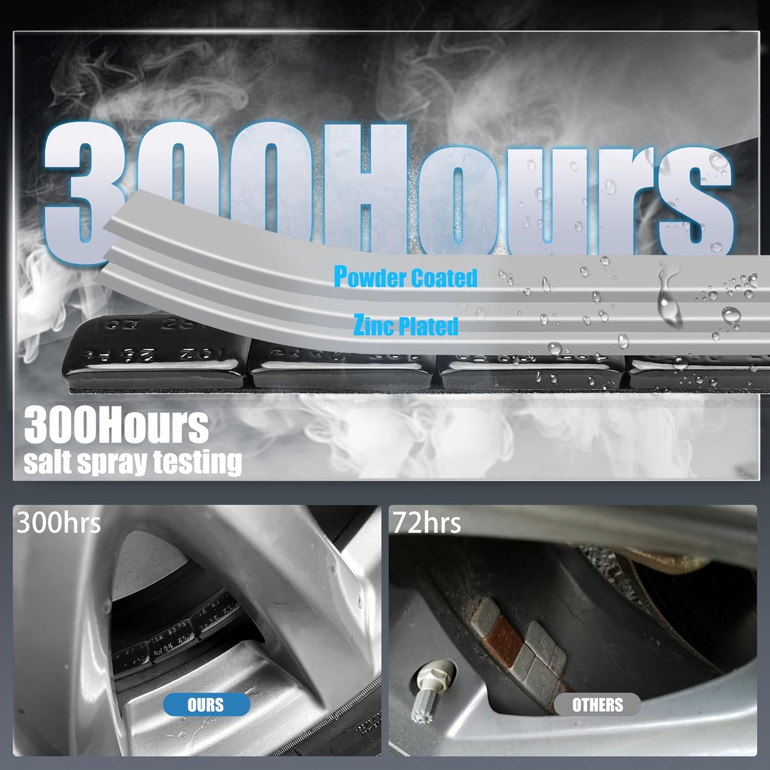 • High quality for durability: The balance are treated with a powder coating to prevent corrosion and rust, and can withstand any weather conditions your car normally experiences. Meanwhile, our wheel weights feature rounded corner stamping to easily contouring any wheel shape and size