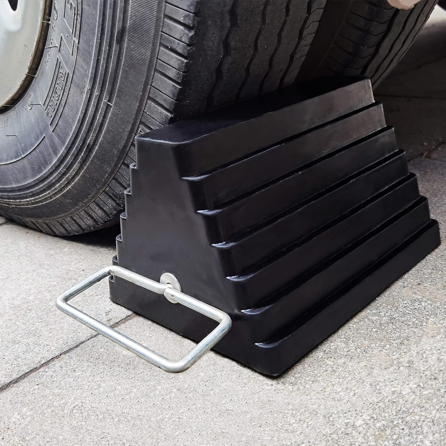 • Durable Rubber: Wheel chocks are made of premium rubber. Compared with plastic chock, our blocks has the characteristics of UV resistance, oil resistance and more robustness. The special material can carry a large weight and is durable.