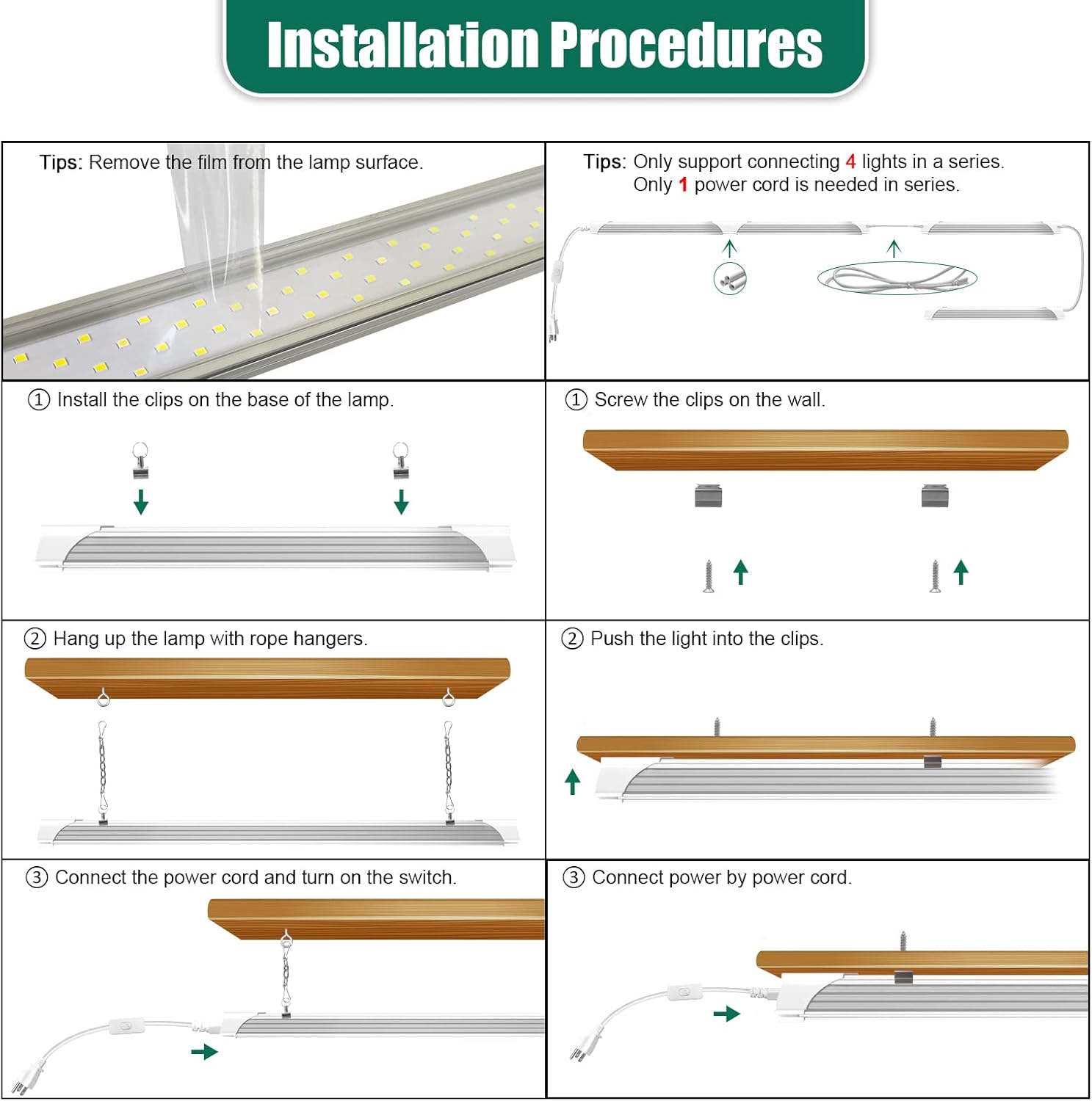 - [Linkable and Easy Installation] - Plug & Play. Come with 59" power cord with on/off switch. You could link up to 4 lights in a series by 47 inches connecting cords or small connectors.