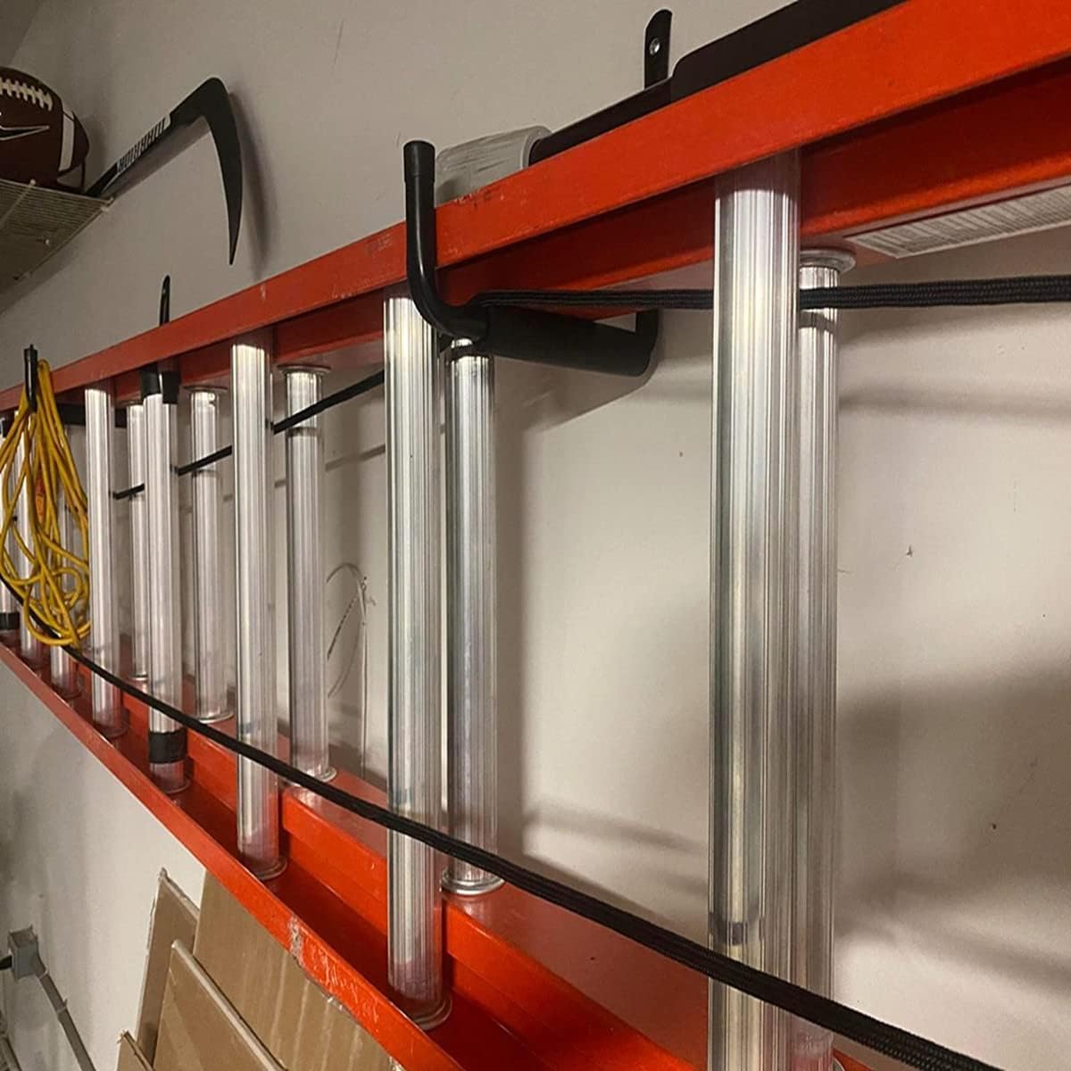 - MULTIPURPOSE: Garage storage hooks to hold heavy tools safe enough, especially for holding ladder, chairs, blast blower, cart , bicycles, garden hoses, sports equipment and other and bulk items.