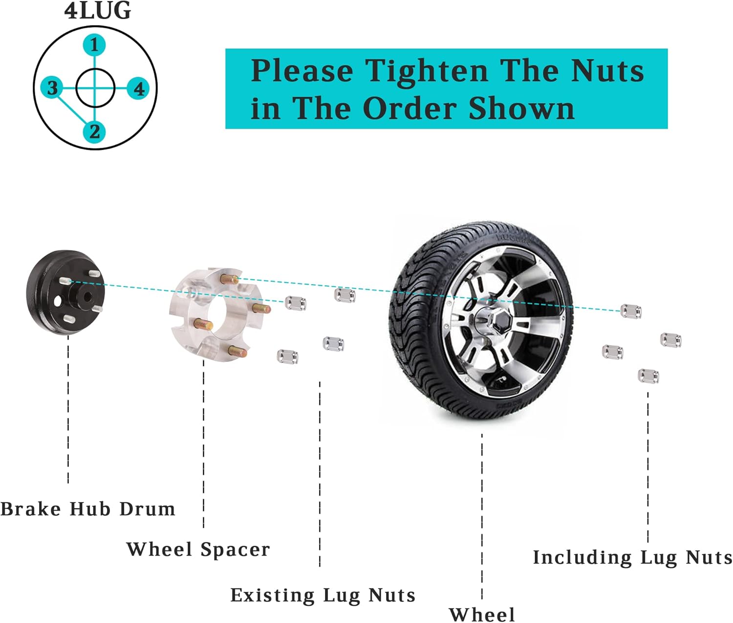 - 2 inch wheel spacers for EZGO, Club Car & Yamaha golf carts with 4Γ4 bolt pattern and 1/2-20" studs which are heat-treated and hardened for resisting corrosion and rust.