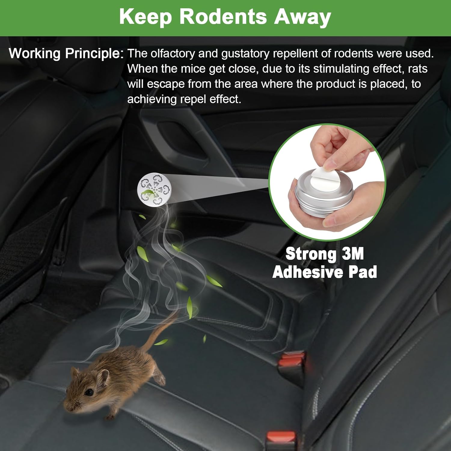 - Rat Repellent for Car Engines: Made with a combination of essential oils, the peppermint rodent repellent give off a long-lasting scent of essential oils, quickly repelling rodents from your car. The rodent repellent outdoor odor lasts for 12 weeks.