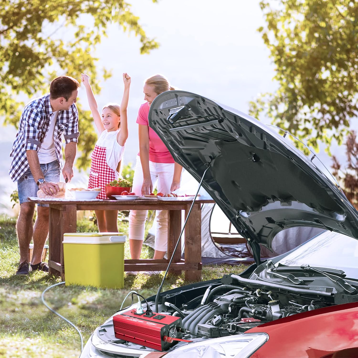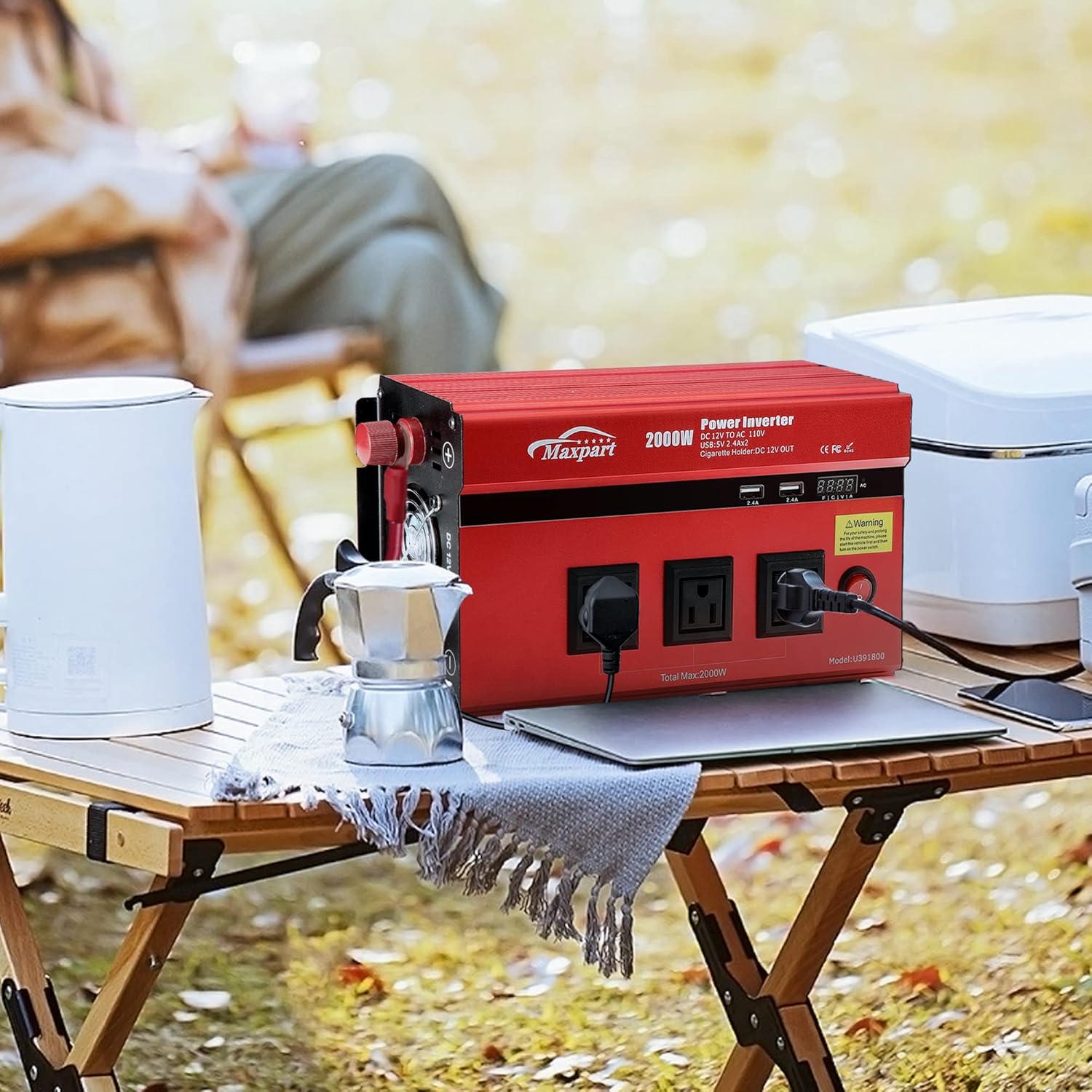 • Multipurpose Inverter - High Power Inverter 2000 watt for car/vehicles/truck, e-bike inverter,home 12v battery inverter, solar battery inverter converter. Advanced Safety Protection inverter is ideal for use on vacations, work trips, and camping. Also to power your device for Emergencies, hurricanes, Storms, Snowstorms, and outages