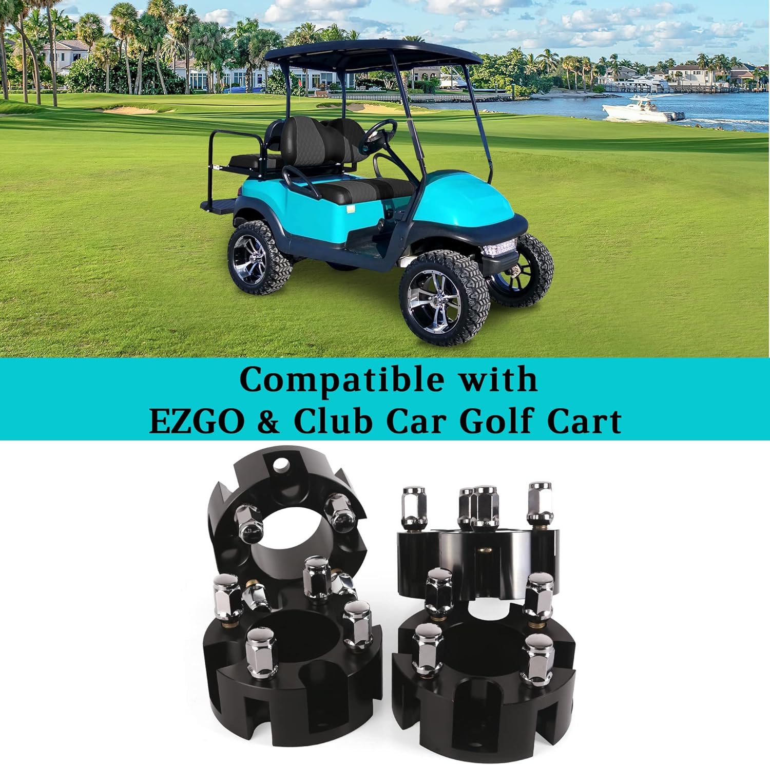 - 2 inch wheel spacers for EZGO, Club Car & Yamaha golf carts with 4Γ4 bolt pattern and 1/2-20" studs which are heat-treated and hardened for resisting corrosion and rust.