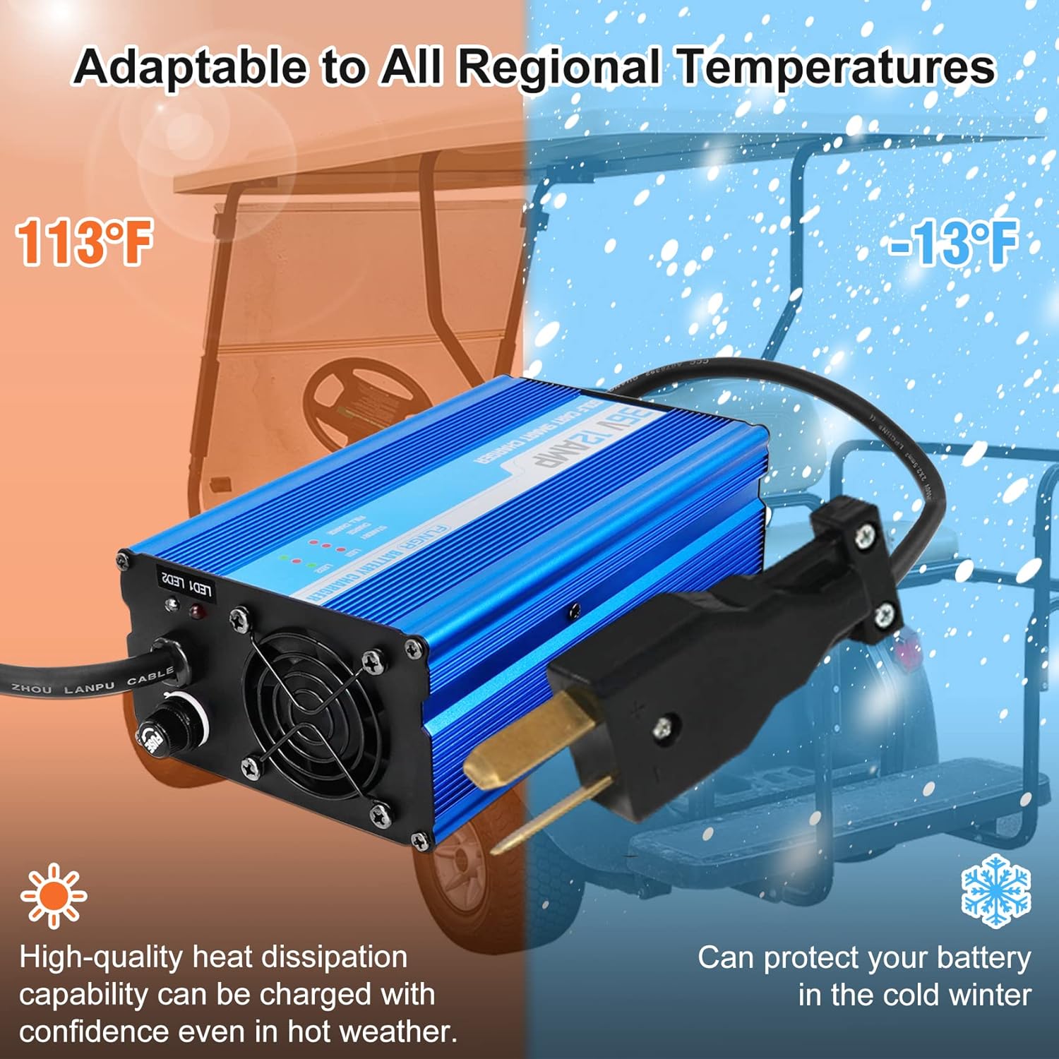 - 【Fast Charging】 : 12 Amp 36 Volt Golf cart Battery Charger faster than 5 Amp chargers! You can save double the time to fully charge your golf cart