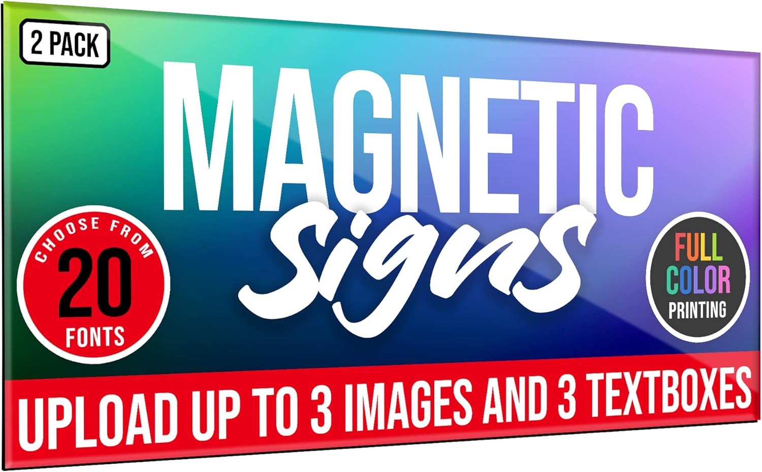 - CUSTOM CAR MAGNET - Promote your business on the go with our 12"x24" custom car magnets. Personalize with your logo, text, or design. These magnetic signs are great for branding cars, trucks, trailers, and storefront doors.
