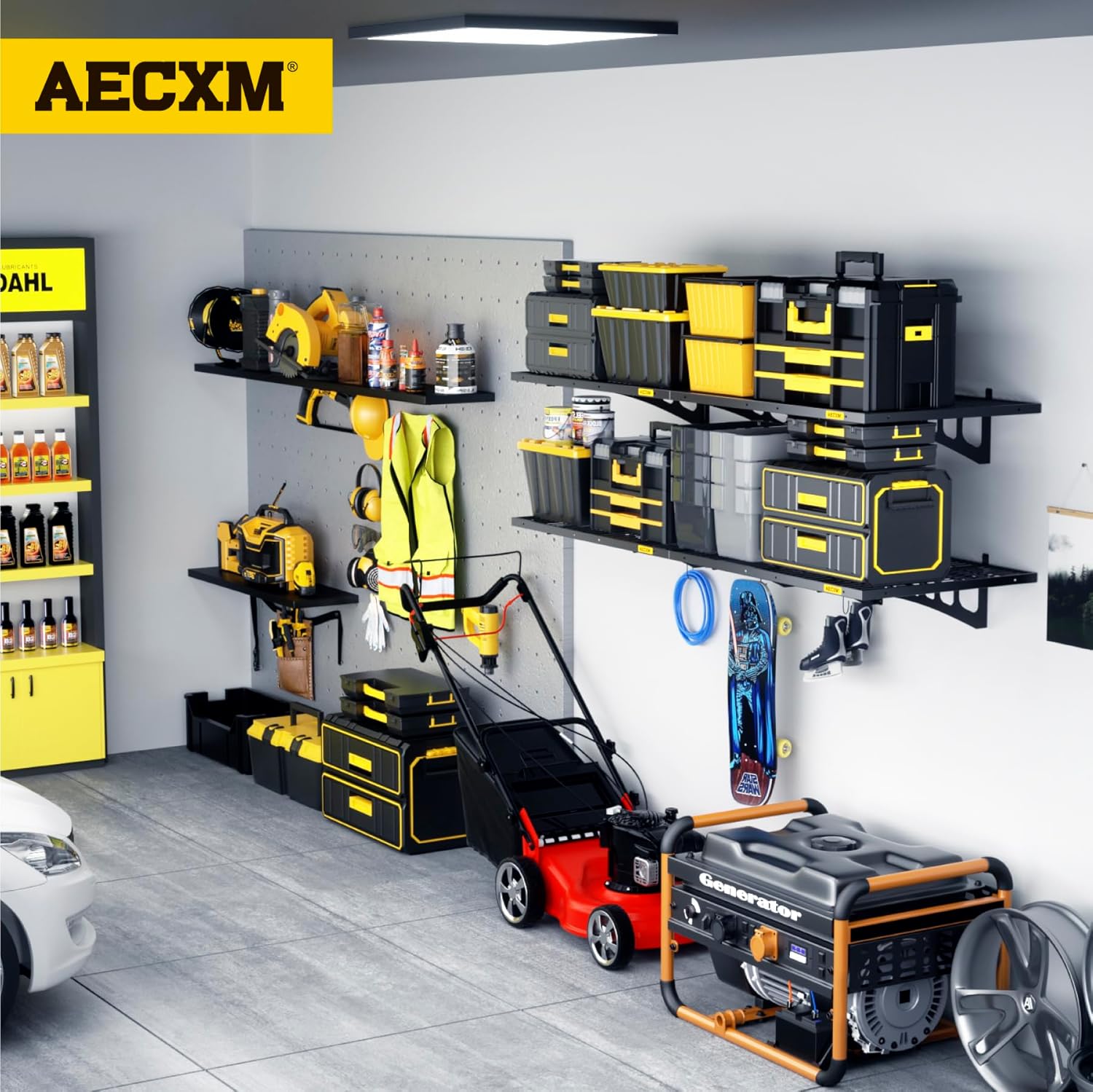 - Innovative Design: Unlike fixed-spacing systems, Aecxm garage storage shelves wall mounted feature sliding rail screws, allowing installation on wood studs spaced anywhere within the 36-inch garage shelf length. No more compatibility issues with uneven stud spacing