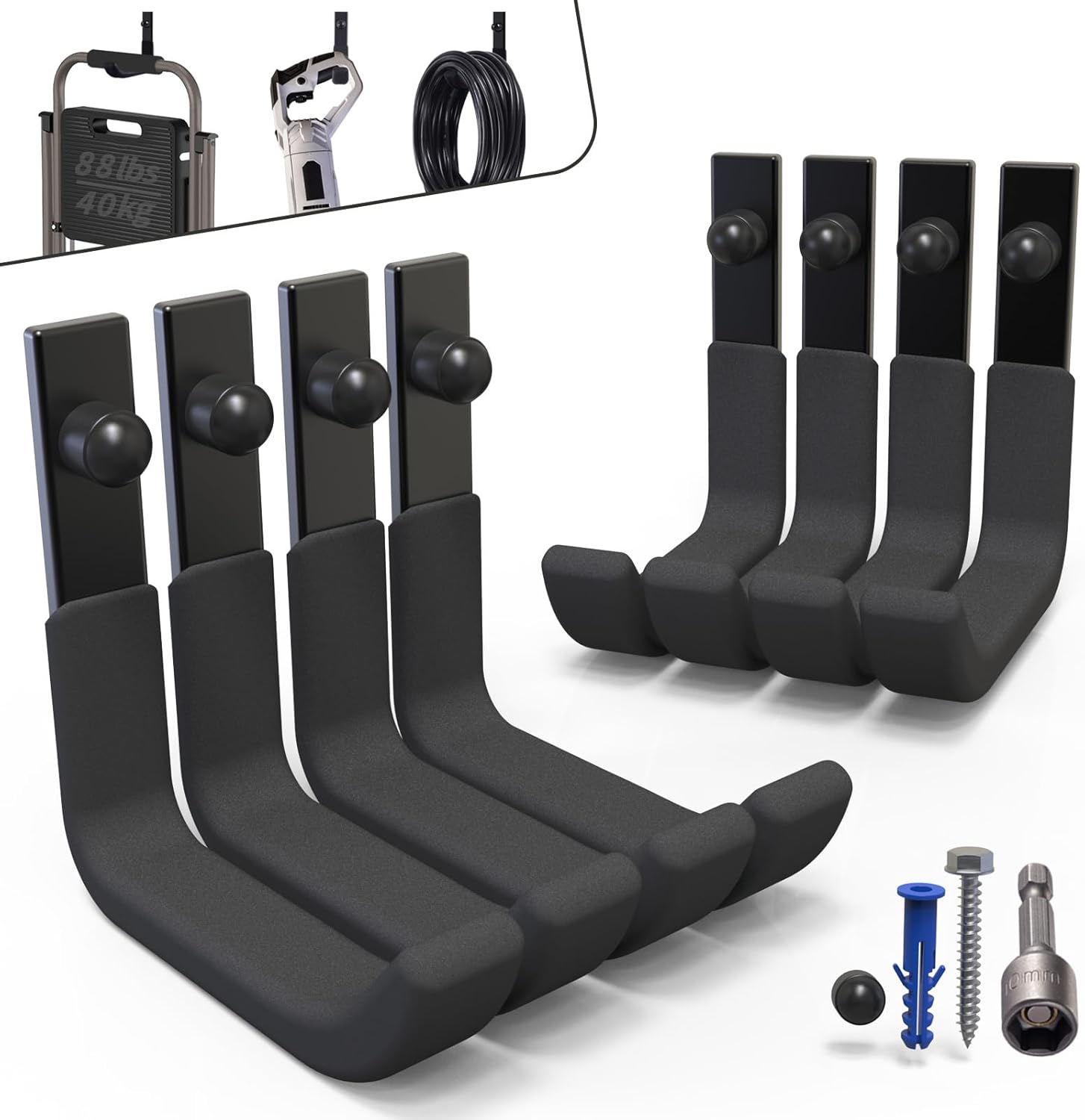 - ▶【STRONG & SECURE】Garage hooks is made of heavy-duty steel. Simple J-shape & no-weld is suitable for securely holding all types of items. 88 lbs(40kg) safe working load.