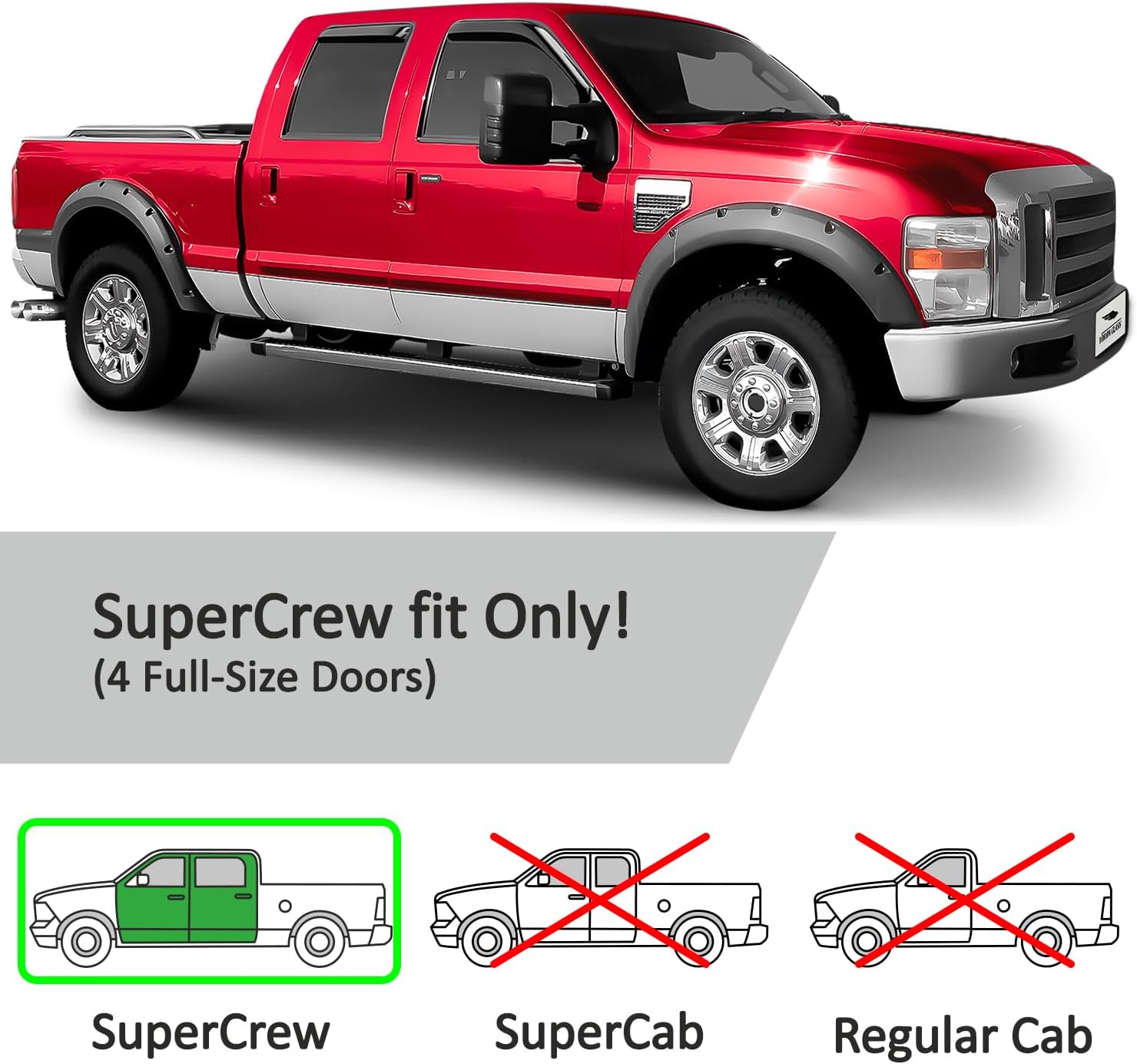 - Attention! CUSTOM FIT only for Ford F-250 Super Duty 1999-2016 SuperCrew, Ford F-350 Super Duty 1999-2016 SuperCrew, Ford F-450 Super Duty 1999-2016 SuperCrew, Ford F-550 Super Duty 1999-2016 SuperCrew.