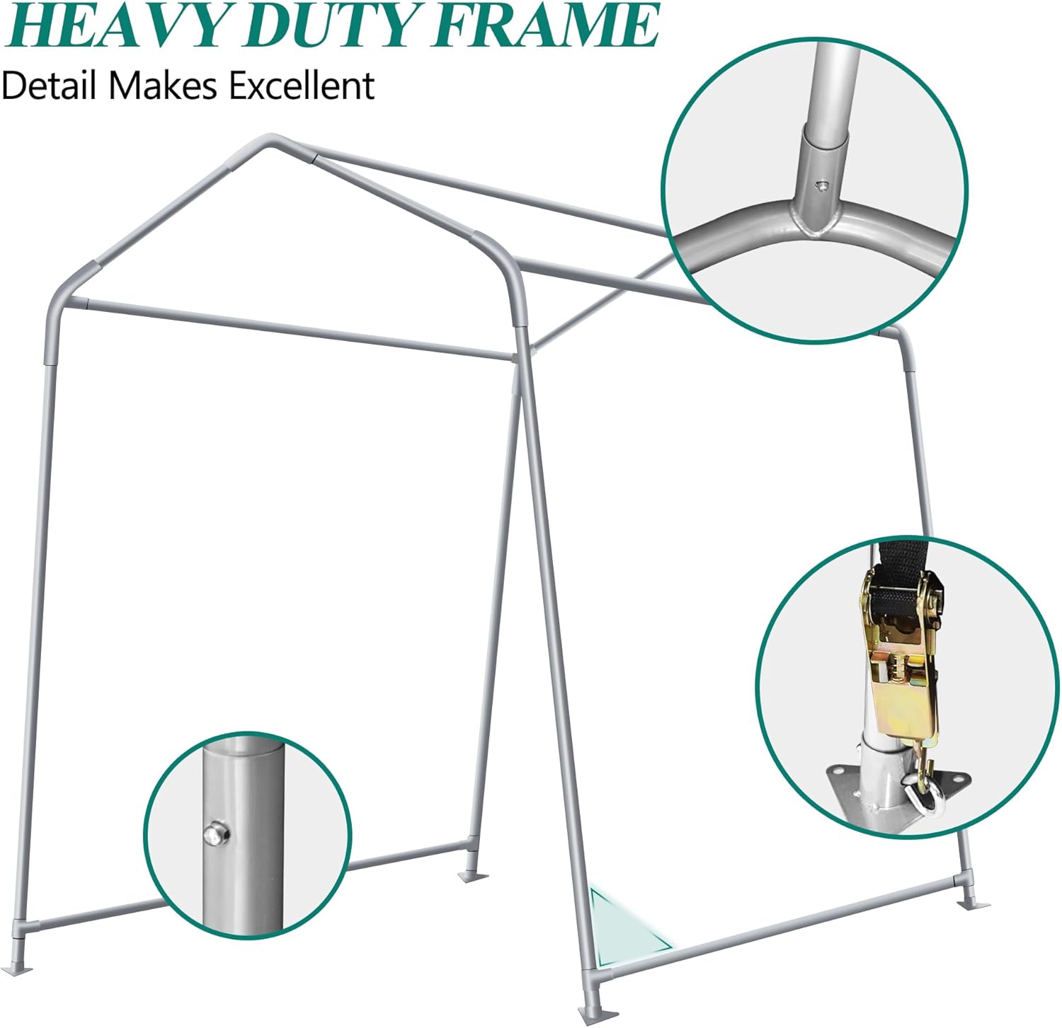 - 🧰STURDY STEEL FRAME: The outdoor storage shelter shed is made of a rust resistant heavy-duty steel frame. SIZE: 6FT*7FT*7FT. The outdoor portable garage storage shed can hold Bike, ATV, Motorcycle Shelter, garden tools, lawnmower, patio furniture storage and so on