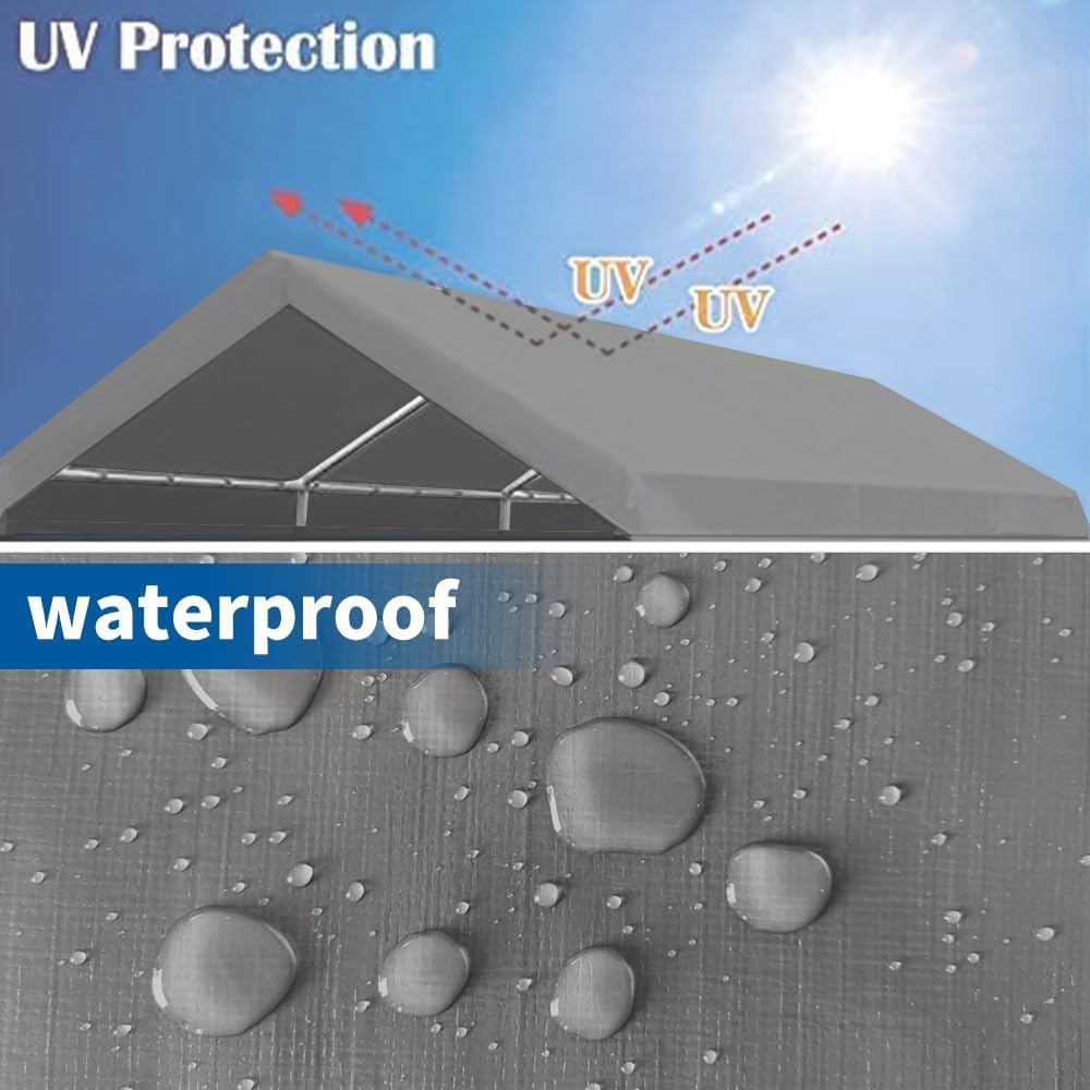- 【WATERPROOF CANOPY COVER Only】- This Top replacement Roof Cover is Made of Heat-sealed Polyethylene Fabric, which is Anti-UV, Waterproof and Can Protect Your Car or Vehicles against Dust, Sun, Wind, Rain and Snow. FRAME NOT INCLUDED