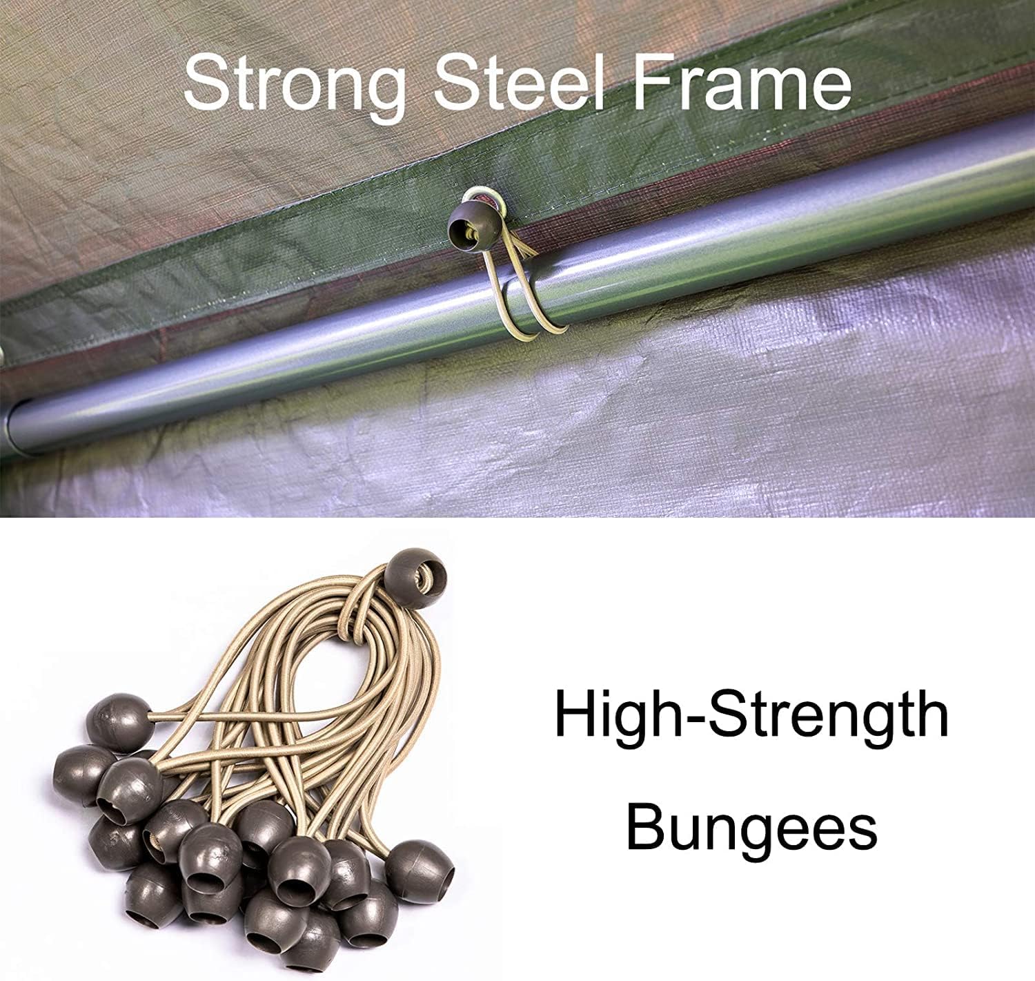 - High Strength Bungees & Easy To Install: Ball bungees Cords are Used to Hold the Top Cover and the Frame Together, To Tightly Secure the Canopy to the Frame. This Will Enhance the Stability of the Carport.