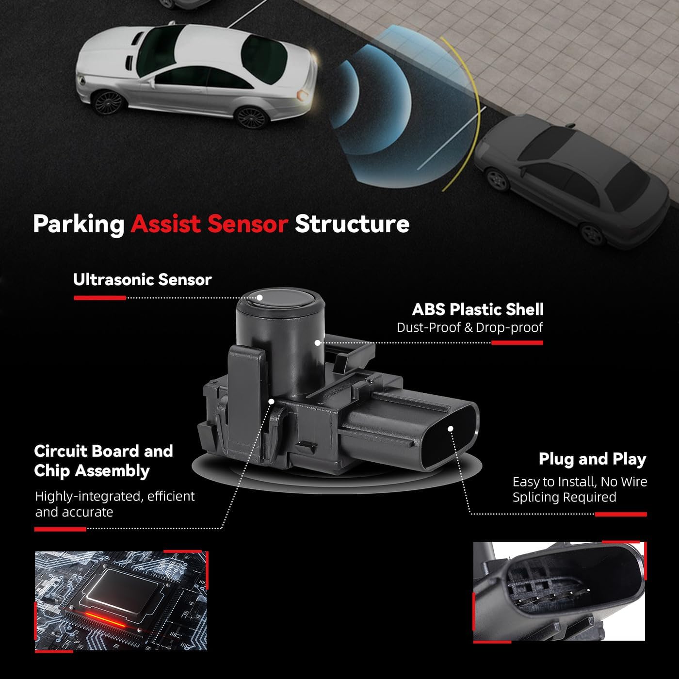 - [Durability & Easy Installation]: Crafted from OE comparable materials, this sensor is built to be waterproof and Shockproof. Designed for universal compatibility, it features a seamless plug-and-play setup—no drilling or complex wiring required. Enjoy quick and effortless installation in just minutes, while its rugged construction ensures long-lasting performance