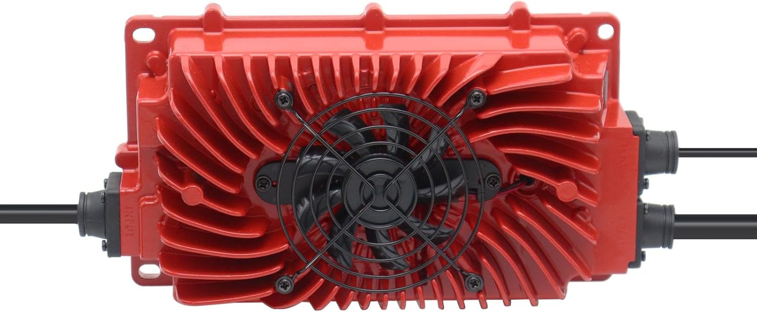 - *LIGHTWEIGHT & CONVENIENT CARRY HANDLE - The charger weighs in at only 6.5 lbs and is more than 65% lighter than most OEM golf cart battery chargers. It is constructed with a durable die-cast aluminum alloy casing providing exceptional durability.