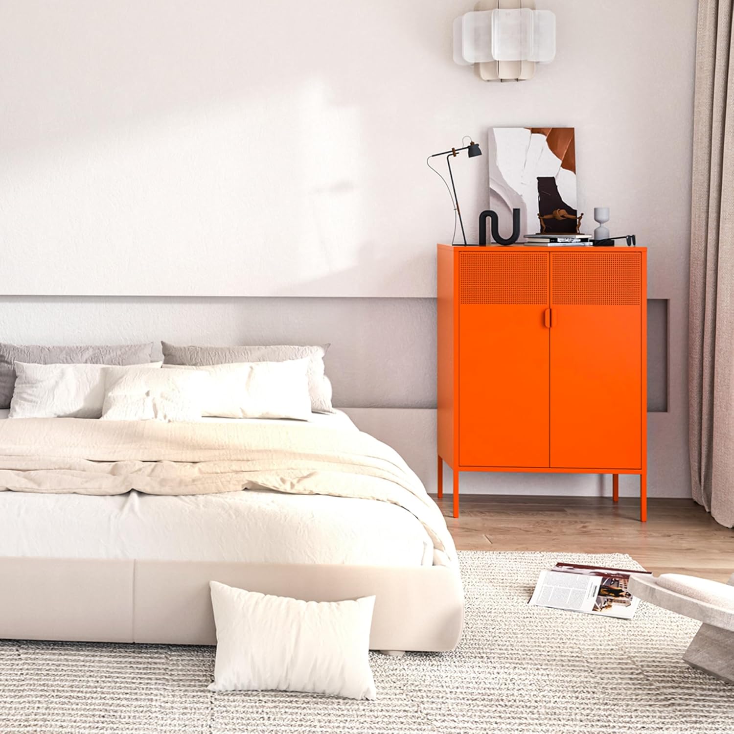 2 Mesh Door Metal Cabinet with Adjustable Shelves, Multipurpose Orange Storage Cabinet, 3-Tier,Metal Storage Cabinet for Office Home,Hallway(Orange, 47''H)