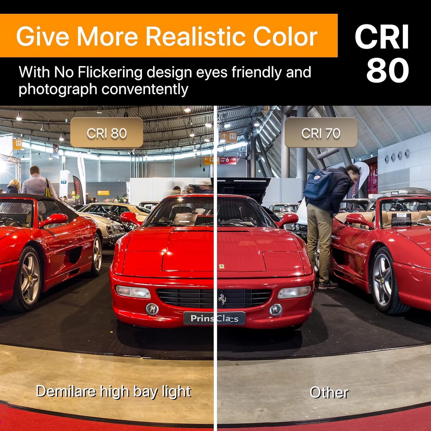 - High Brightness Output: The DEMILARE 200W High Bay LED Shop Lights deliver an impressive 30,000 lumens of bright daylight white light (5000K), ensuring your workspace is brilliantly illuminated for all tasks, making them the ideal choice for any environment needing high bay lights.
