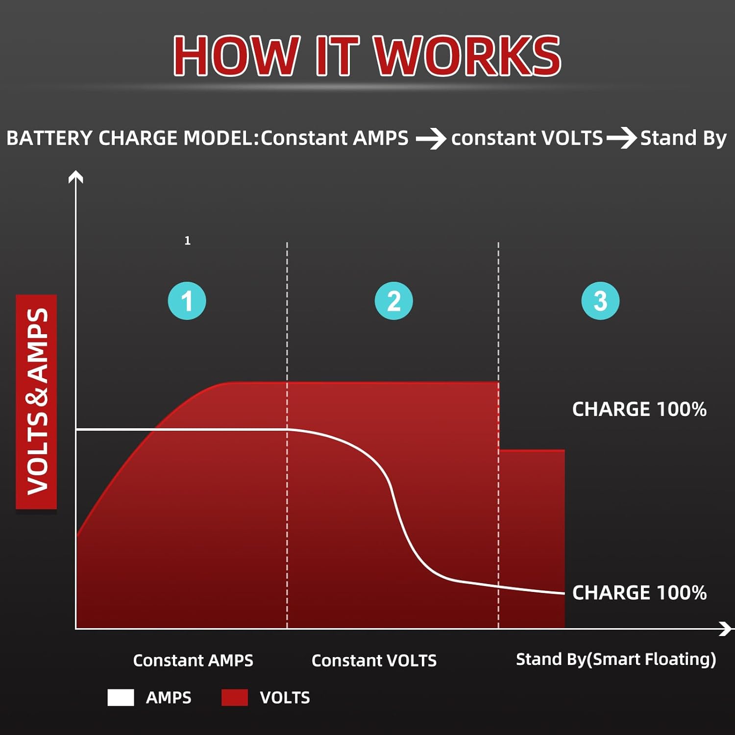 - 【PORTABLE & LIGHT WEIGHT DESIGN】 - Designed with convenience in mind, the smart charger weight in at only 5 lbs, the light weight charger can easily be taken with you. It is constructed with a durable die-cast aluminum alloy casing providing exceptional durability.
