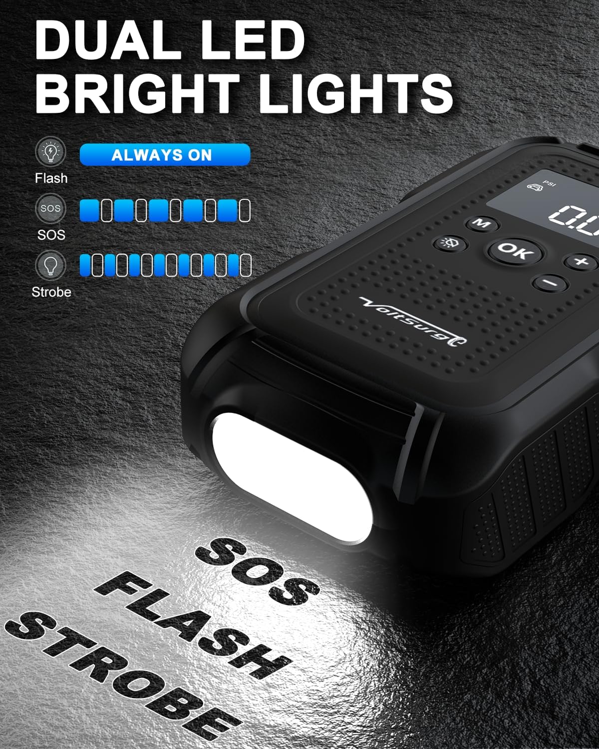 - 【It Has 6 Functions at The Same Time】 VoltSurge D04 car emergency kit is a new R&D model, which is a new high-power inflatable all-in-one battery emergency power supply that integrates six functions such as car emergency start, tire inflator, lighting, SOS warning, mobile device charging, and starting 12V on-board equipment