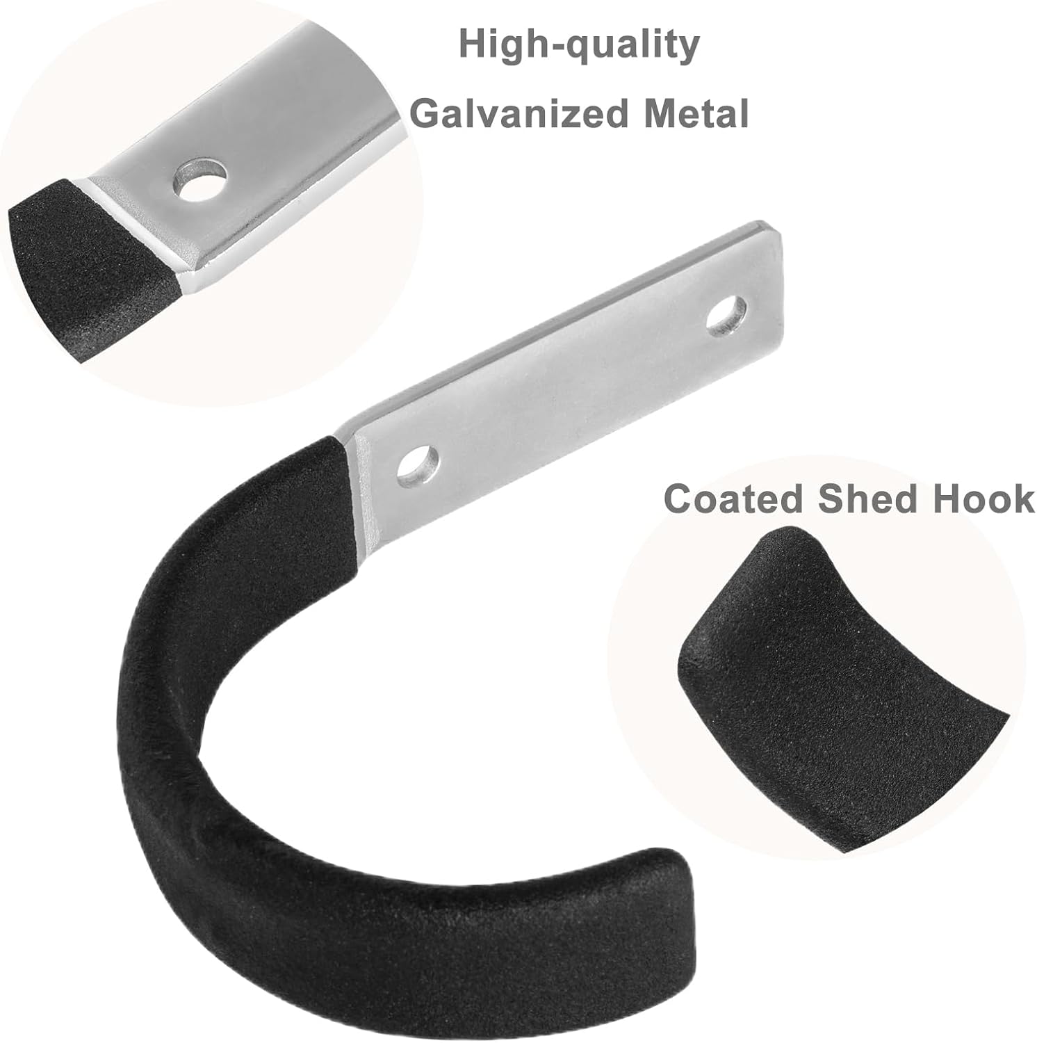 - 【Durable and Sturdy】Our bicycle storage hooks are crafted from heavy-duty galvanized solid steel, and the non-slip dipped coating is applied using a hanging dip process, making the coating thicker and more flexible to effectively protect your items from abrasion and slipping.