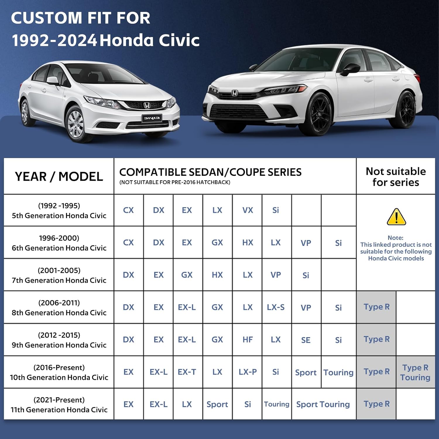 • Material Polyethylene : Vehicle Service Type Honda Civic (1991-2024)
