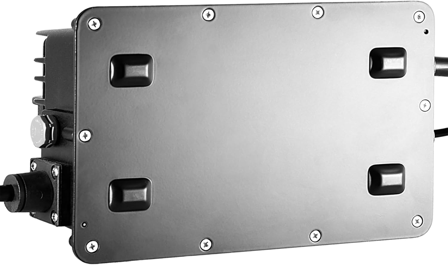 - [Aluminium Casting] The shell is made of aluminum Casting, the charger is filled with AB glue to protect and cool down the main board and components, waterproof and dustproof rating of IP66, AC cable length of 5 feet, DC cable length of 10 foot; comfortable carrying handle, the weight of the product is about 6.6 Ibs.
