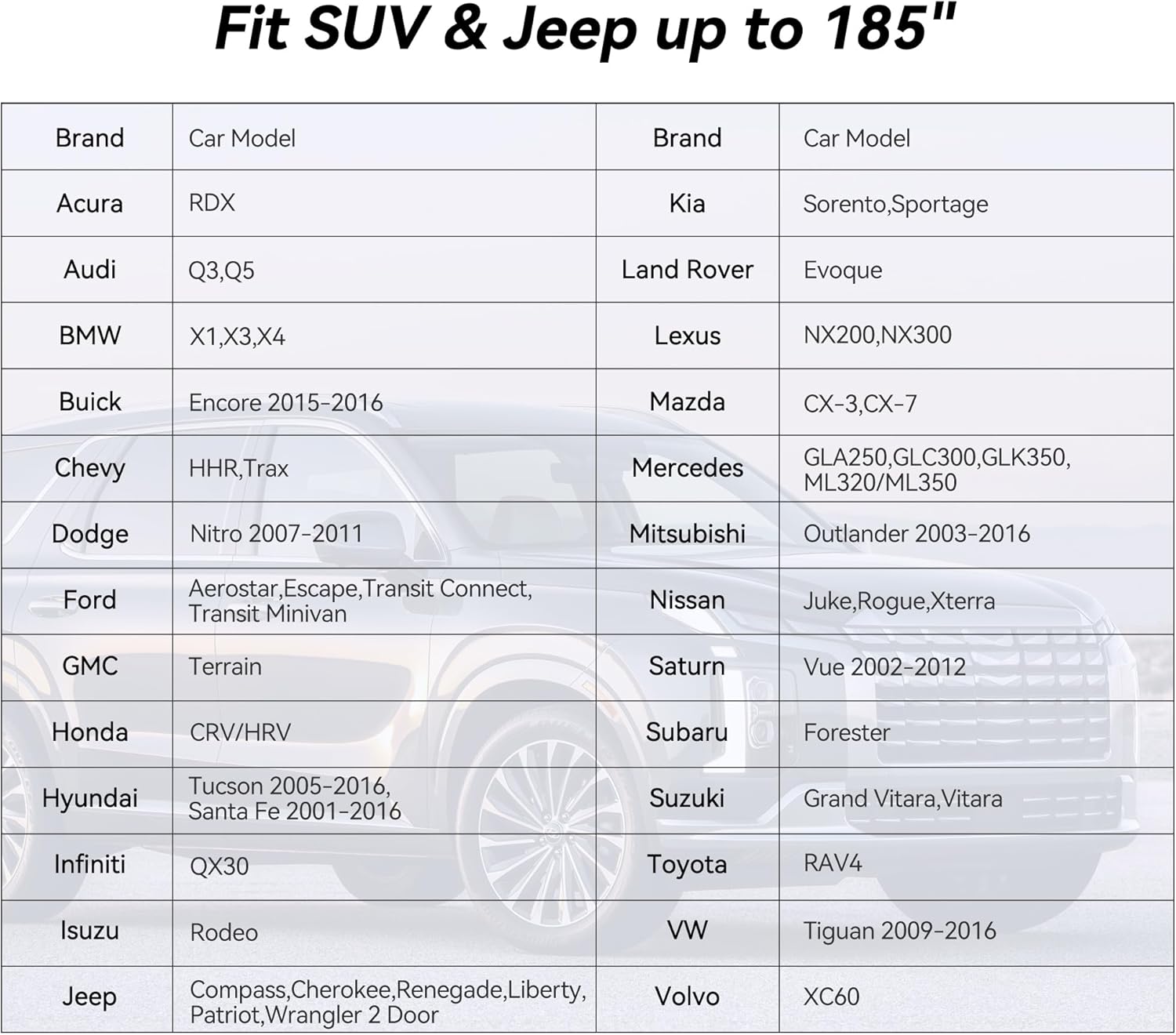 - ăChoose the Right ModelăUniversal fit for SUV which length is up to 185 inch.See the product images for applicable vehicle models.The universal car cover comes with a storage bag,you can store it easily when not used.