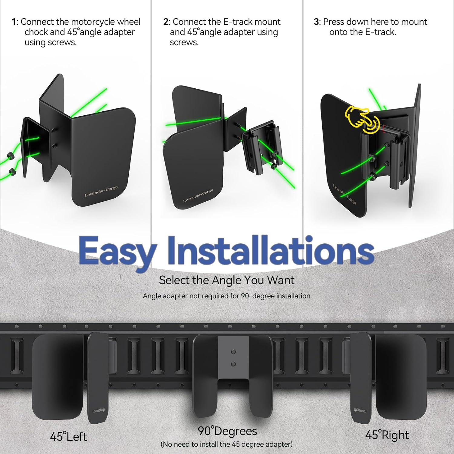 - Easy to Fix : The E track motorcycle wheel chock greatly reduces the time it takes to secure your motorcycle, spend that time enjoying your motorcycle ride