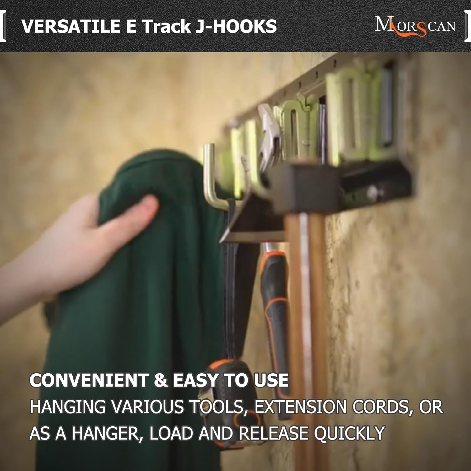 - VERSATILE HOOKS - Hang various tools, accessories, extension cords, straps, cables, wires, hoses, ropes, or as a hanger for your coats or hats with these J hook e track tie down anchor points. Used for Box Truck, Enclosed Trailer, Garage, Vans, Workshop, Warehouse, etc.