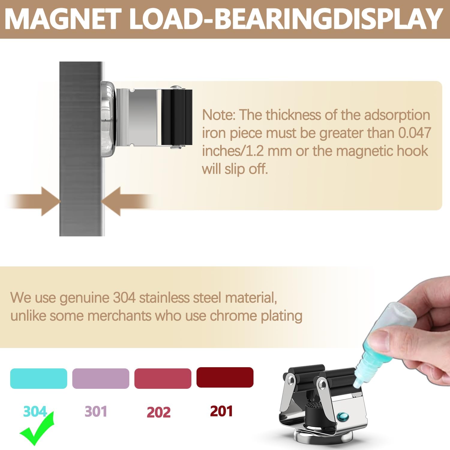 - š§²[PREMIUM QUALITY] It comes with 4 strong magnetic broom hanger and 4 magnetic hooks.For the broom holder wall mount with Anti-Rust stainless steel and the grip of the abrasion-resistant silicone grip keeps broom and dustpan,tools,shovels very well, mop and broom holder wall mount won't fall off easily last for years,for the magnetic hooks you can easily stick to the surface of refrigerator, iron door, iron filing cabinet
