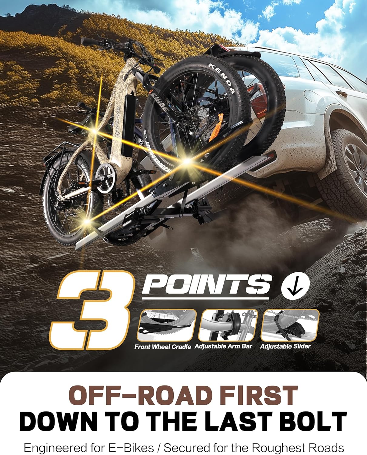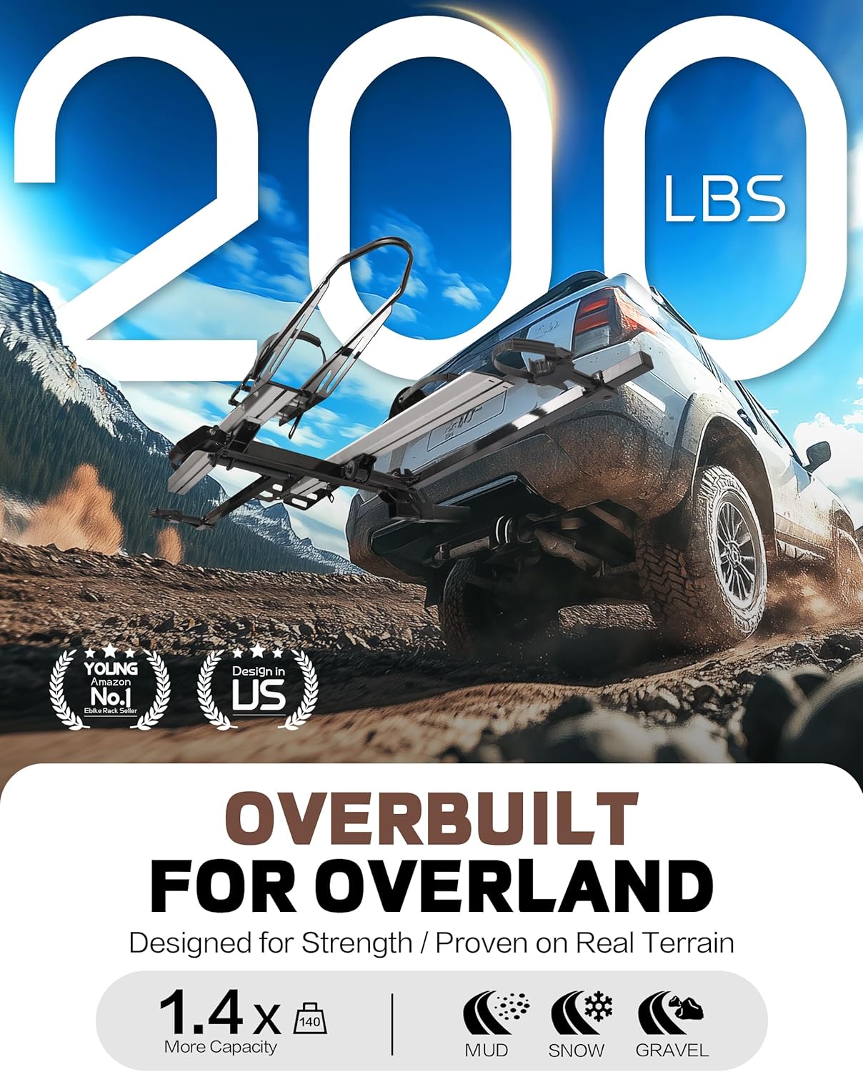 - DURABLE and SAFE: Young Electric bike rack is constructed with reinforced steel and aluminum which makes it durable and powerful enough to carry 2 bikes weighing 100 lbs each. Comes with 2-arm fix, patent secure wheel cradles and anti-wobble structure, that secure your E-bikes in place without swaying and knocking against vehicle.