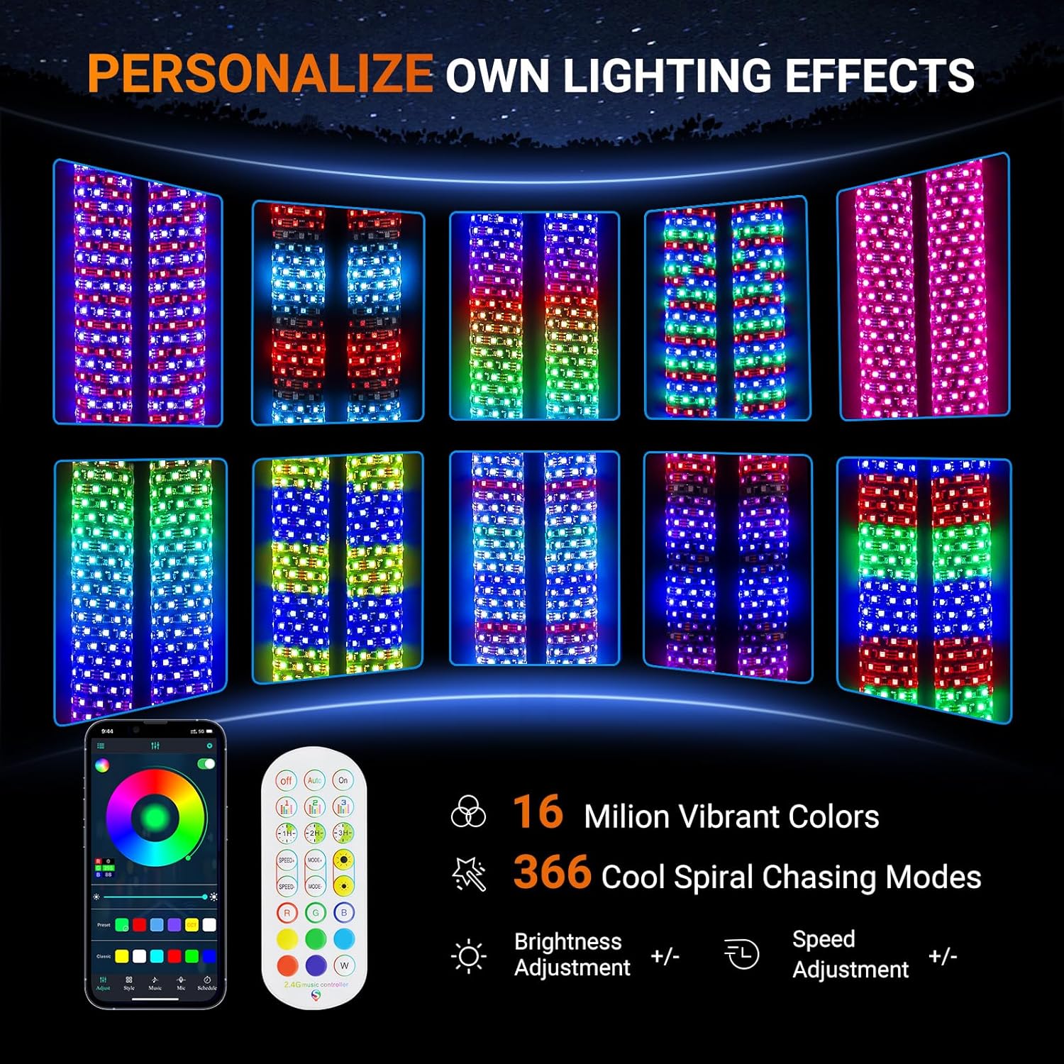 - Special Feature : APP Control, Customizable Flash Patterns, Customizable Music Modes, Multi-Color, Rust Proof