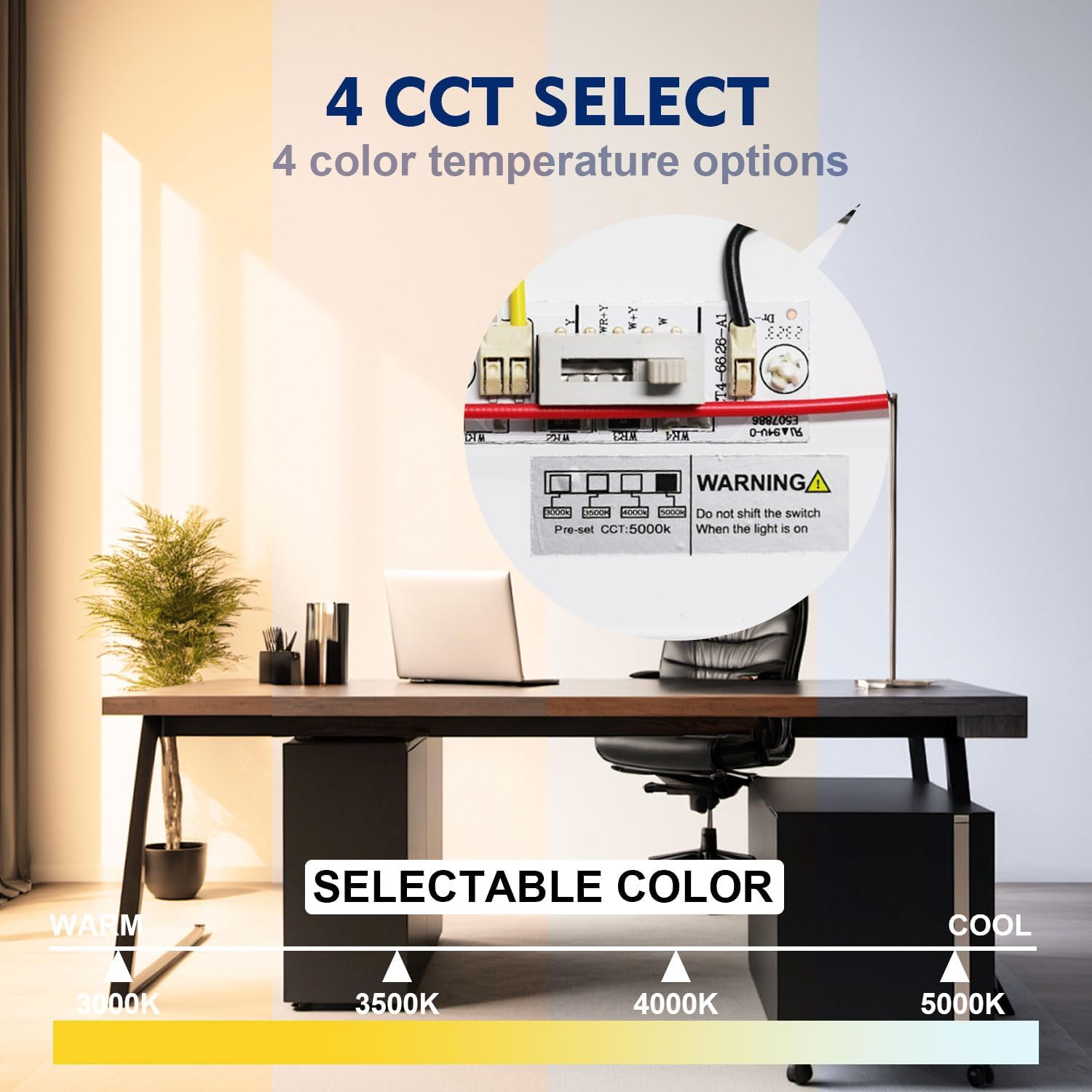 - 【Adjustable Light Color】The LED light fixture offers 4 color temperature 3000K/3500K/4000K/5000K. It is easy to toggle the switch for your preferred before installation to make flattering lighting in your surroundings.