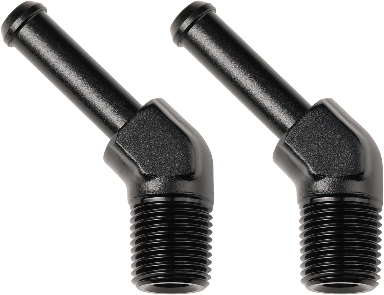 1/8 NPT Male to 1/4" Hose Barb Fitting Adapter 45 Degree Elbow Aluminum Black 2PCS