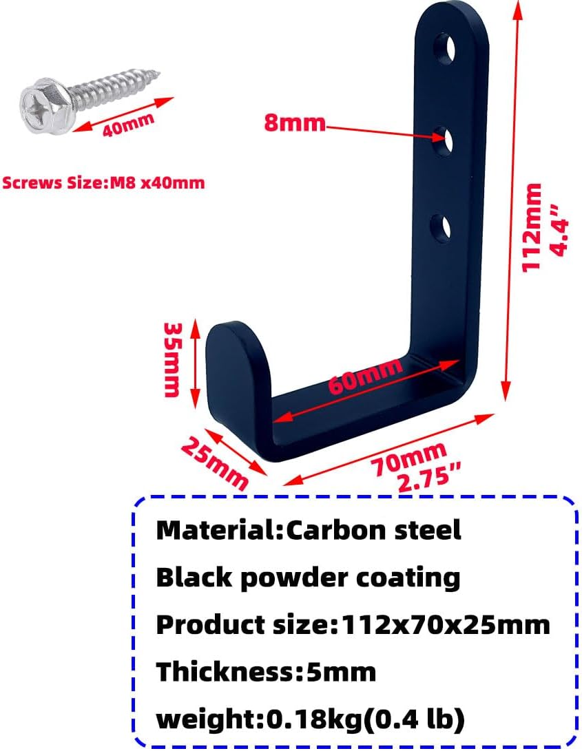 - Heavy duty wall mount J hooks, each hook can carry 230lb (105 KG)