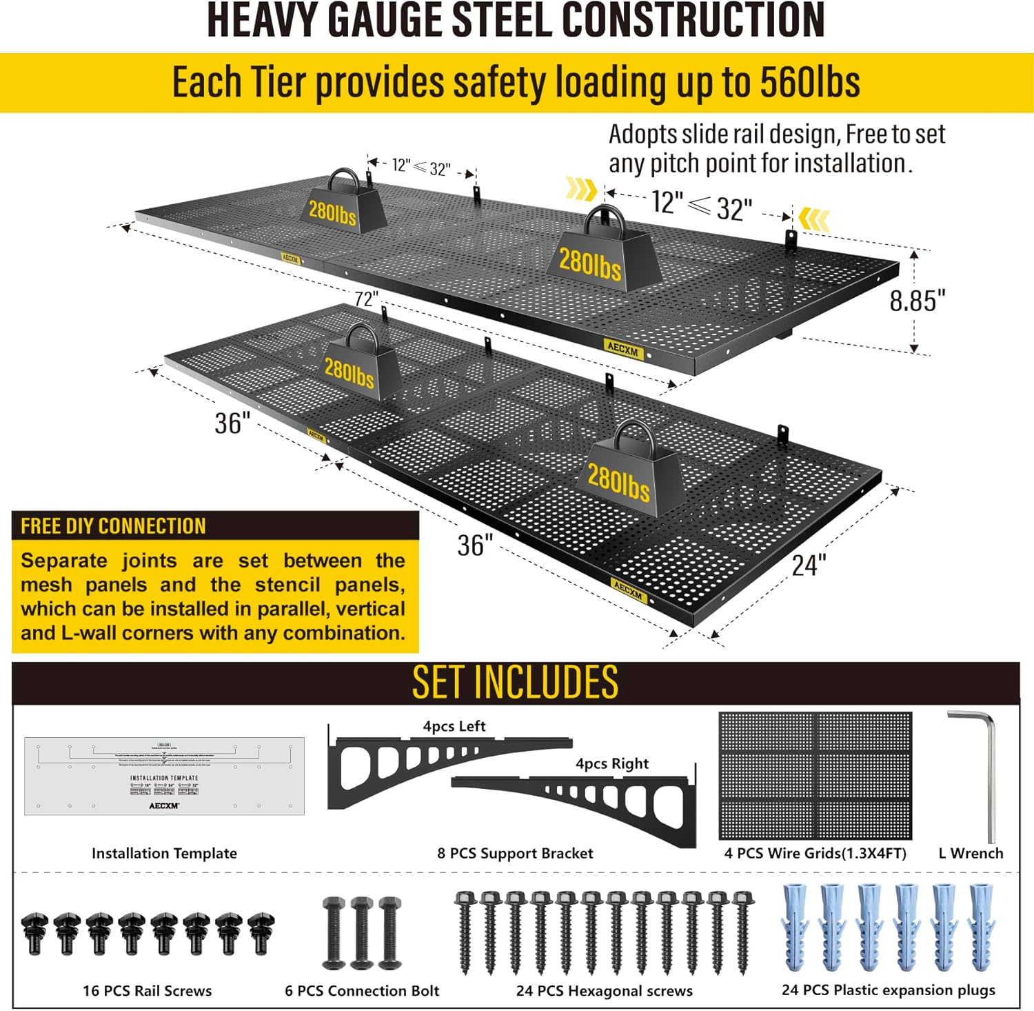 - Customer Support: AECXM offers comprehensive after-sales service. If you have any questions, feel free to contact our teamβweβll assist you promptly. (Note: For installation on brick or concrete walls, use expansion anchors to securely fasten the heavy duty shelving after drilling.)