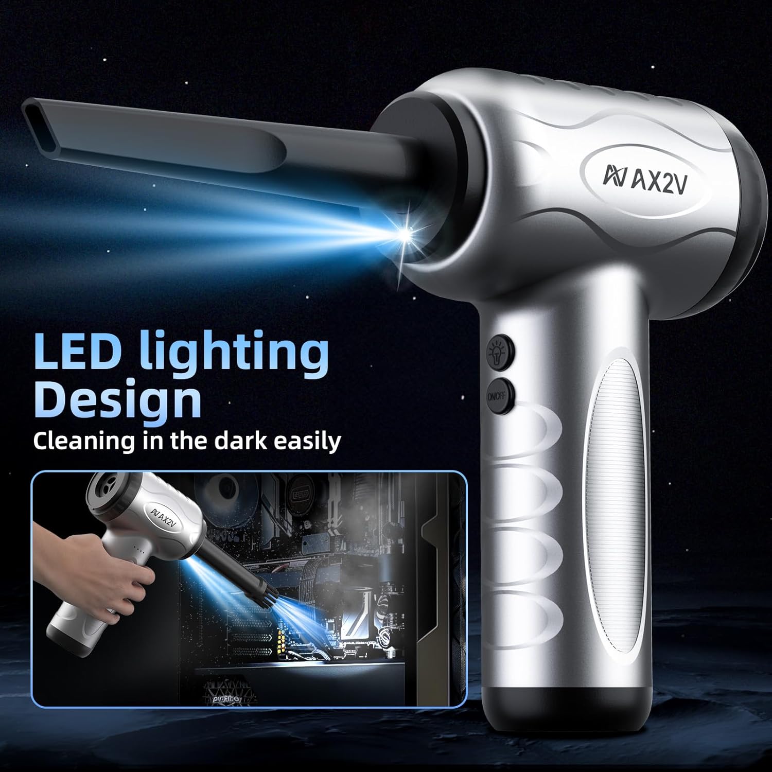 - MAX 16Kpa/120000RPM & 2 MODES: This electric air duster is equipped with a high-efficiency brushless motor. It offers two modes: Max mode at 120,000 RPM high-speed wind force/16Kpa strong suction and Eco mode at 80,000 RPM . the multifunctional vacuum cleaner allows you to easily deal with dust, debris, hair and pet hair inside and outside the car, on keyboards, and between furniture.