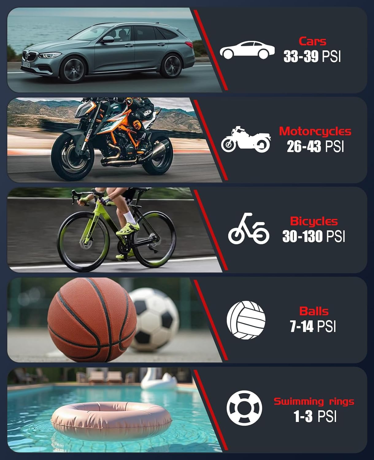 - 【Tire Pressure Monitoring】In addition to inflation, this unit features a tire pressure monitoring function. This battery jump pack ensures that your tires are always at the optimal pressure, enhancing both safe and fuel efficiency during your drives
