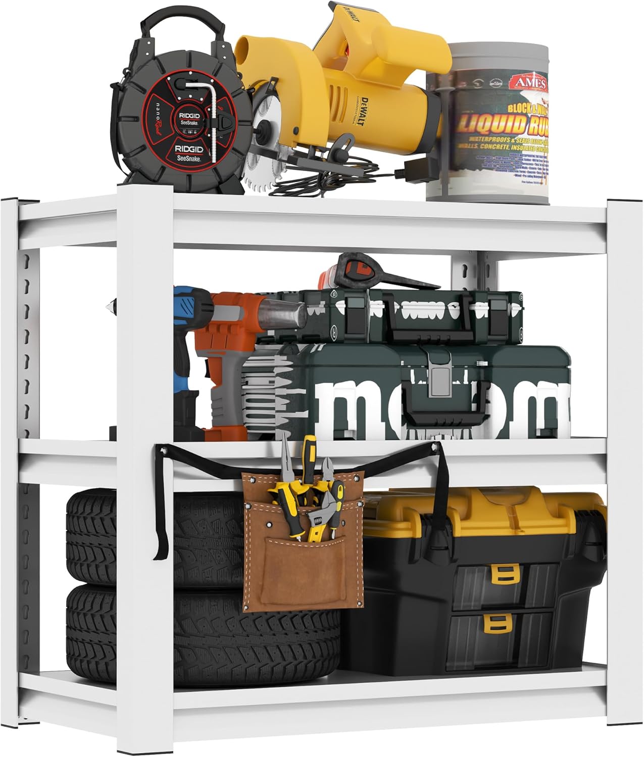 31.5" H Metal Storage Shelving, 1500LBS Heavy Duty Shelves Unit, Adjustable 3 Tier Storage Rack, Industrial Utility Shelf for Garage, Warehouse, Bedroom, Kitchen,18" D×34“W×31.5”H, White