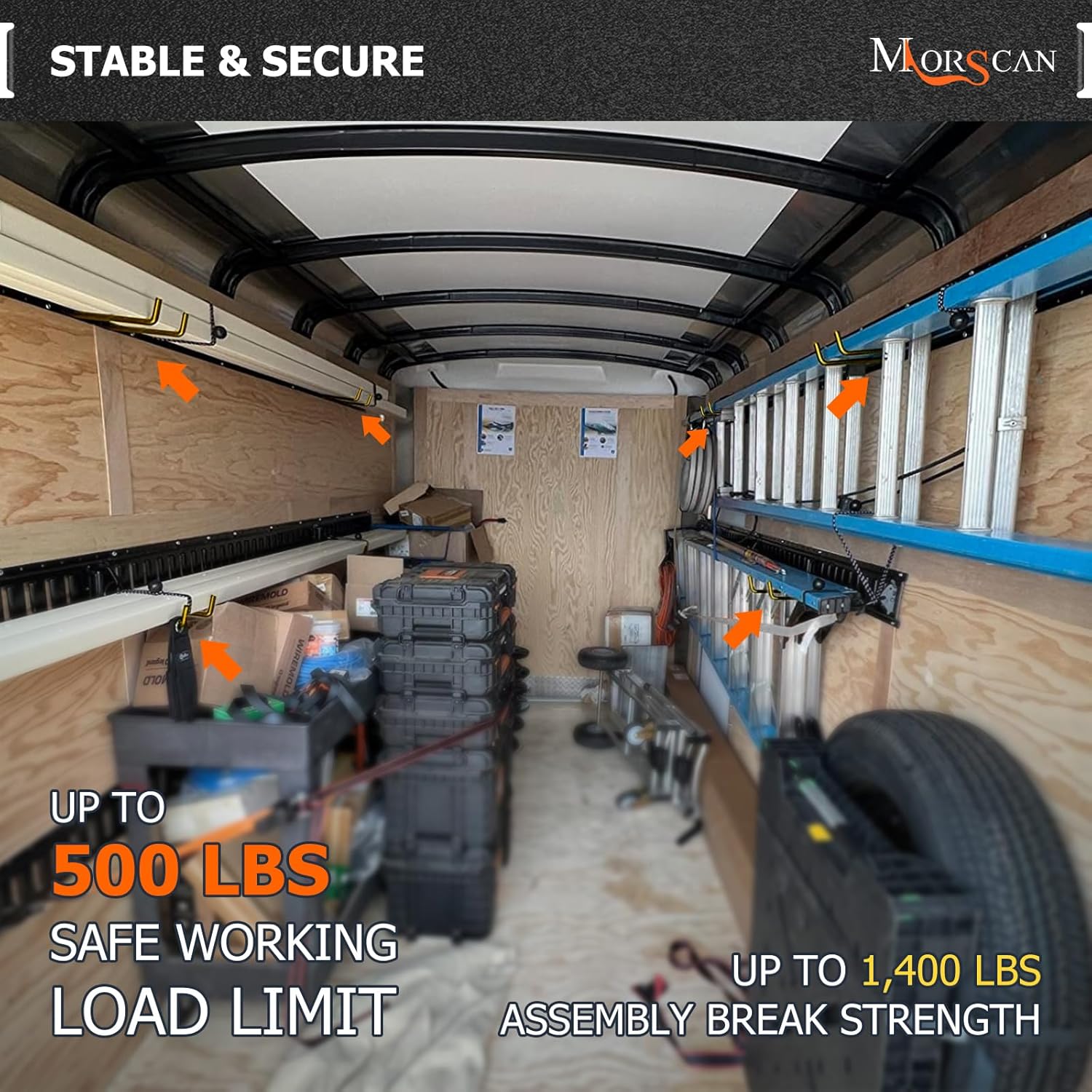 - VERSATILE HOOKS - Store multiple long-handled tools such as brooms, rakes, shovels, hay forks, garden tools and other hand tools with these J hook e track tie down anchor points. Used for Box Truck, Enclosed Trailer, Garage, Vans, Warehouse, Workshop, Garden etc.