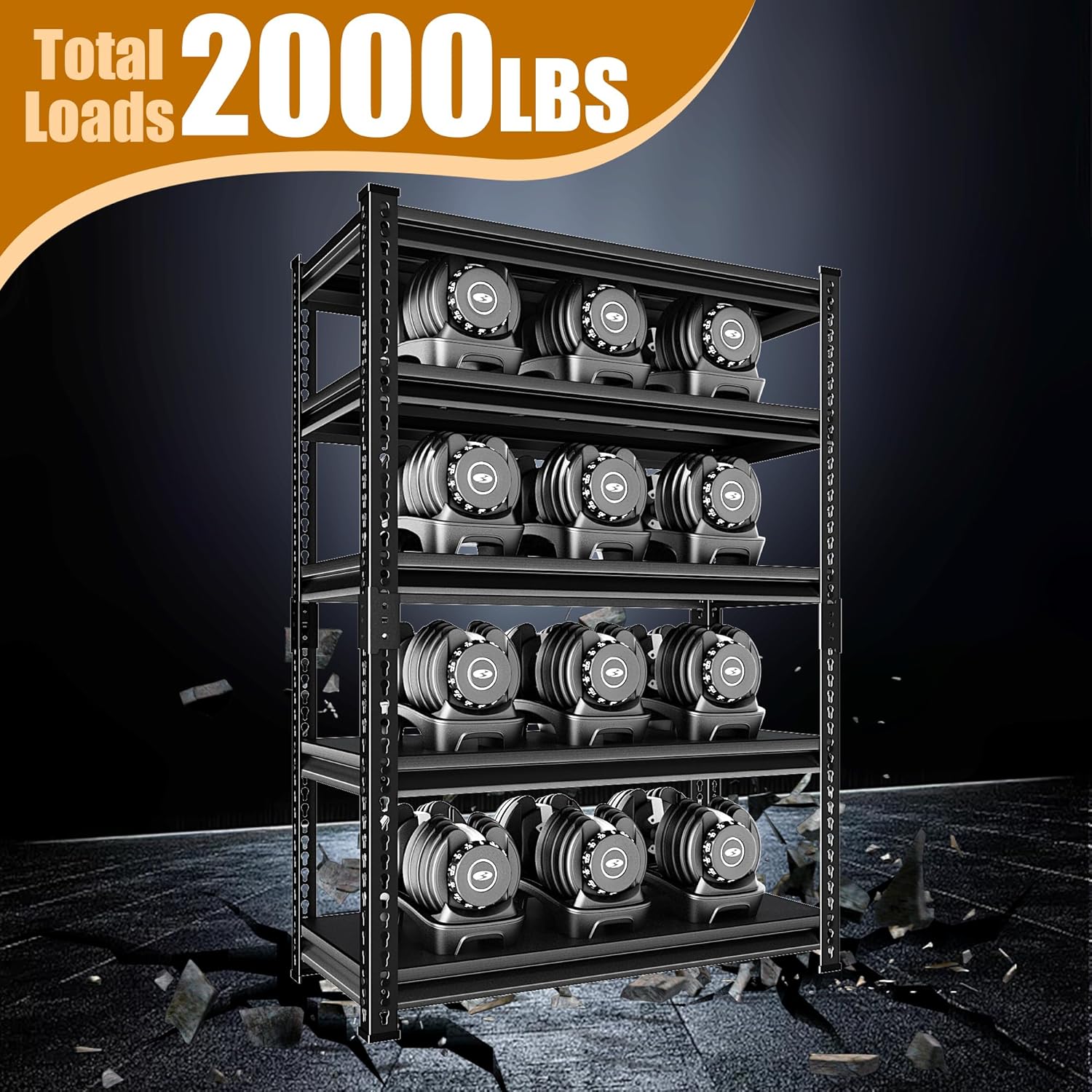 - 【2000 lbs Load Capacity】The 5-tier garage shelves is definitely an upgrade from the traditional wire shelves of the past.All metal shelves with the bracing ribs complete the unit with 2000 lbs bearing capacity for organizing heavier items or breeder tanks.
