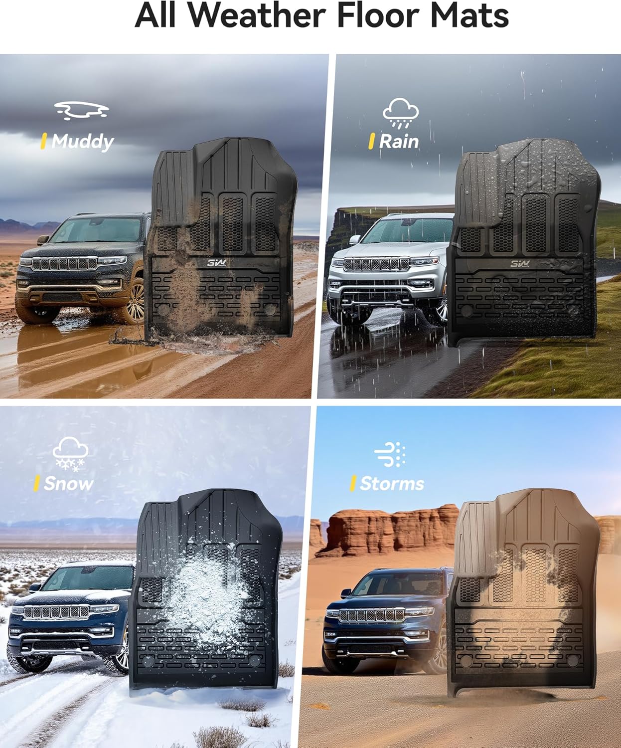 - ANTI-SLIP DESIGN AND EASY TO CLEAN: Compatible with OEM hooks and fasteners, the Jeep Grand Wagoneer floor mats are secured from shifting. The anti-slip surface design can effectively prevent slippery in wet conditions. Use a water hose to clean your floor mats in a few seconds, and it will look like new.