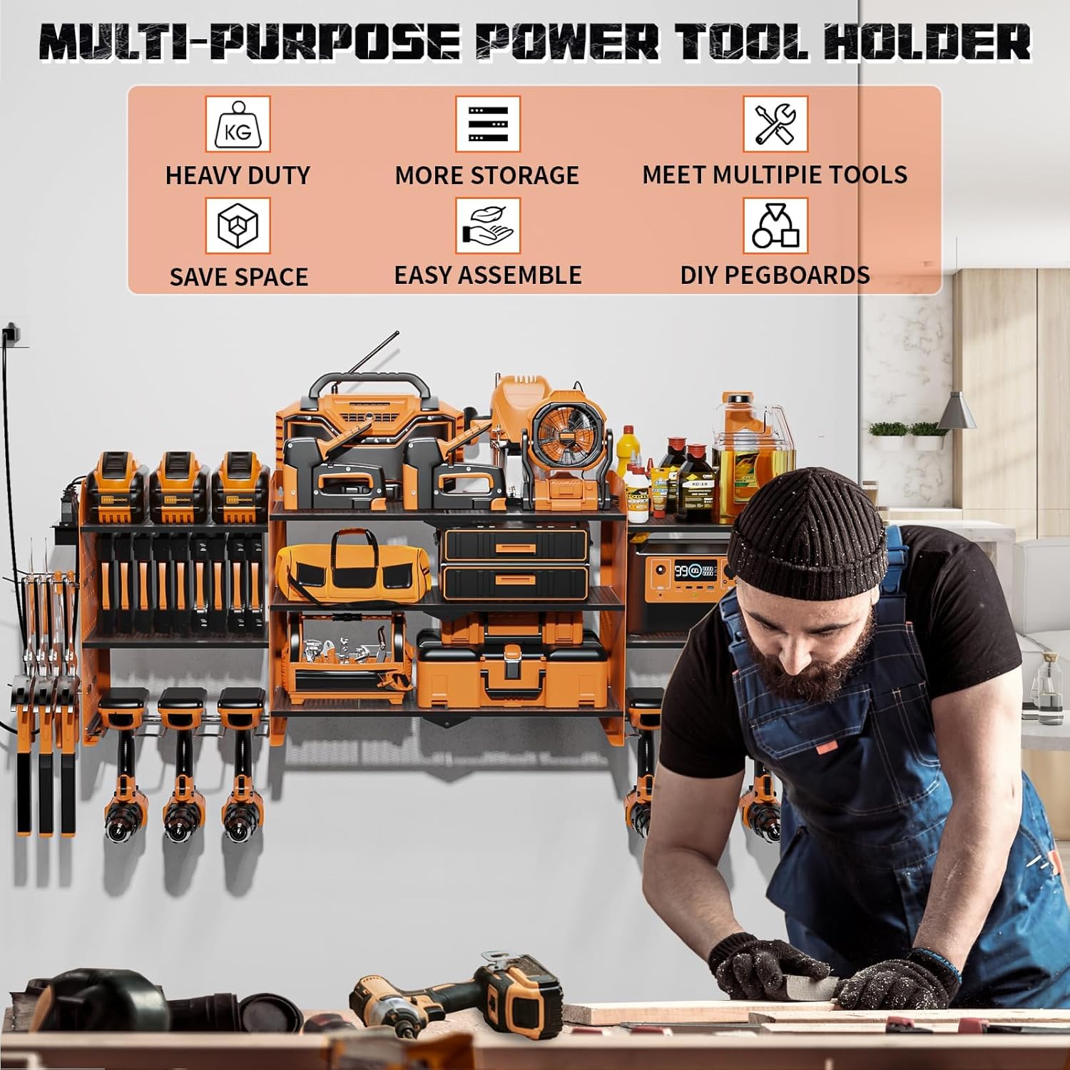 - 【EXCELLENT MATERIAL】Our power tool organizer is constructed with high-quality, heavy-duty steel metal and has a black powder coat finish to prevent rust. It withstands various environments, ensuring long-lasting use in wet basements or dusty garages.