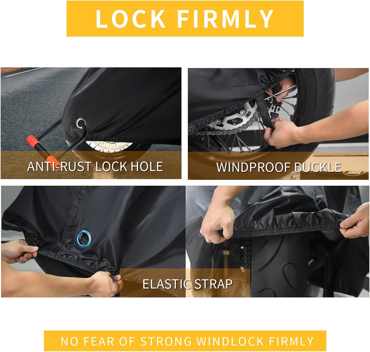 - [Waterproof] This outdoor storage bike cover has a separately sewn waterproof line, which is tight and seamless and can still keep the motorcycle body dry after heavy rain and snow