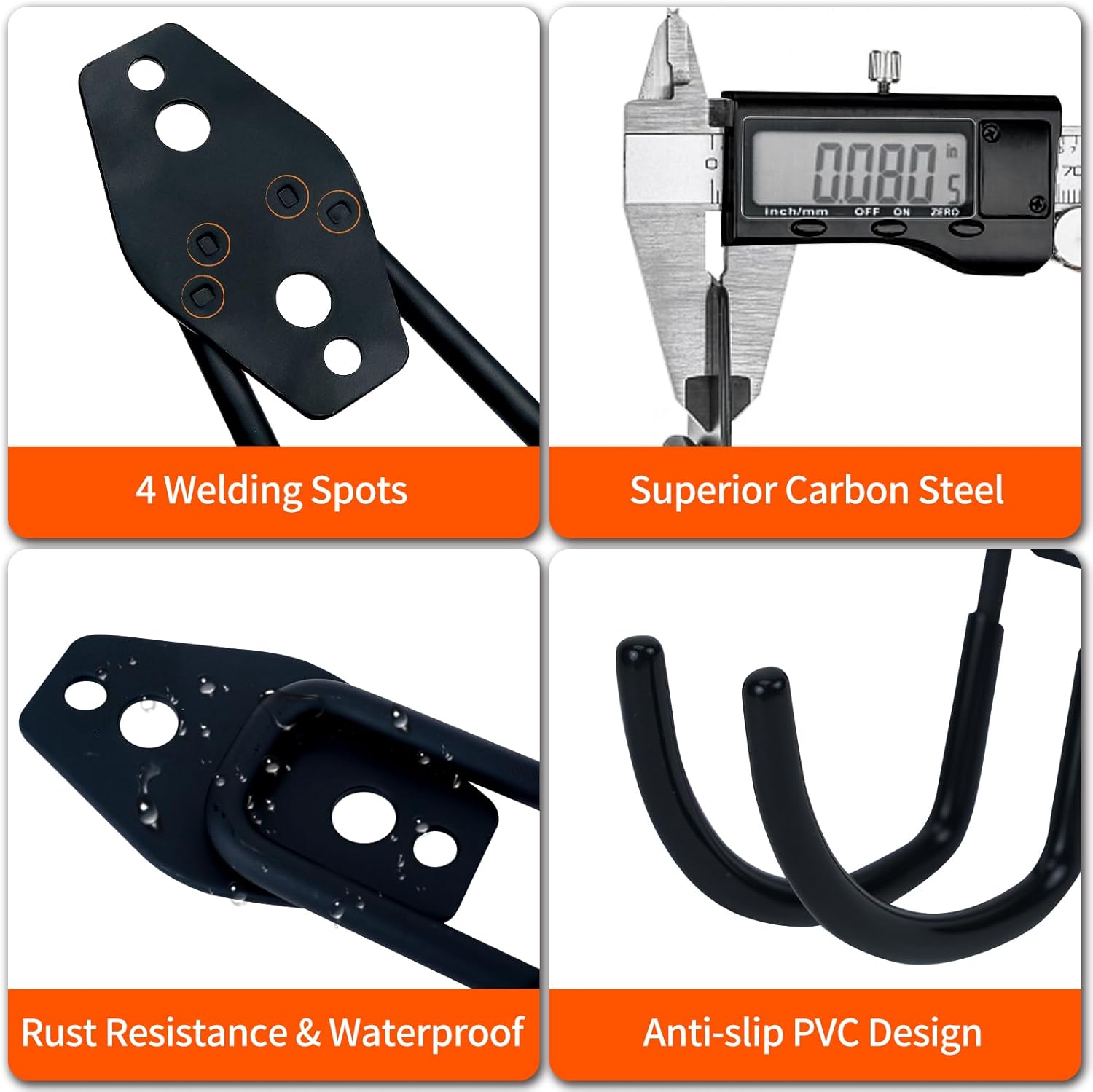 - Upgraded Design: Unlike the marketβs most hooks, our heavy duty garage hooks come with 4 welding dots, which offer more sturdy and durable load-bearing capacity. The PVC coating design prevents slipping and corrosion for a long-lasting use and wide application.