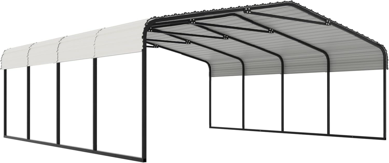20x20 FT Carport with Metal Roof, Heavy Duty Metal Carport Canopy, Garage Car Shelter Shade for Outdoor, Car, Truck, Eggshell