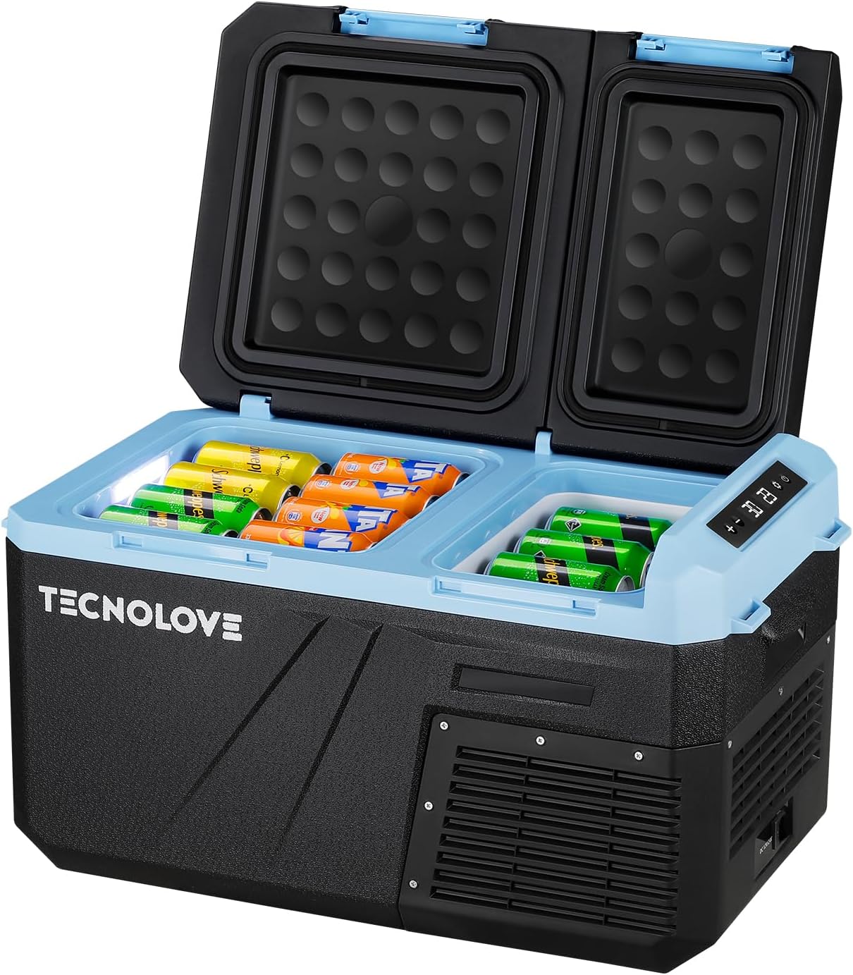 - Compact and Spacious Dual-Zone Design 25 liters (27 quarts) capacity holds up to 46 cans of 355ml drinks. Dimensions: 25.4 x 14.6 x 14.6 inches, weight 27.8 lbs. Designed to stay stable on 45-degree slopes. Ideal for drinks, fruit, seafood, skincare products, and breast milk. Perfect for camping, BBQs, and family trips.