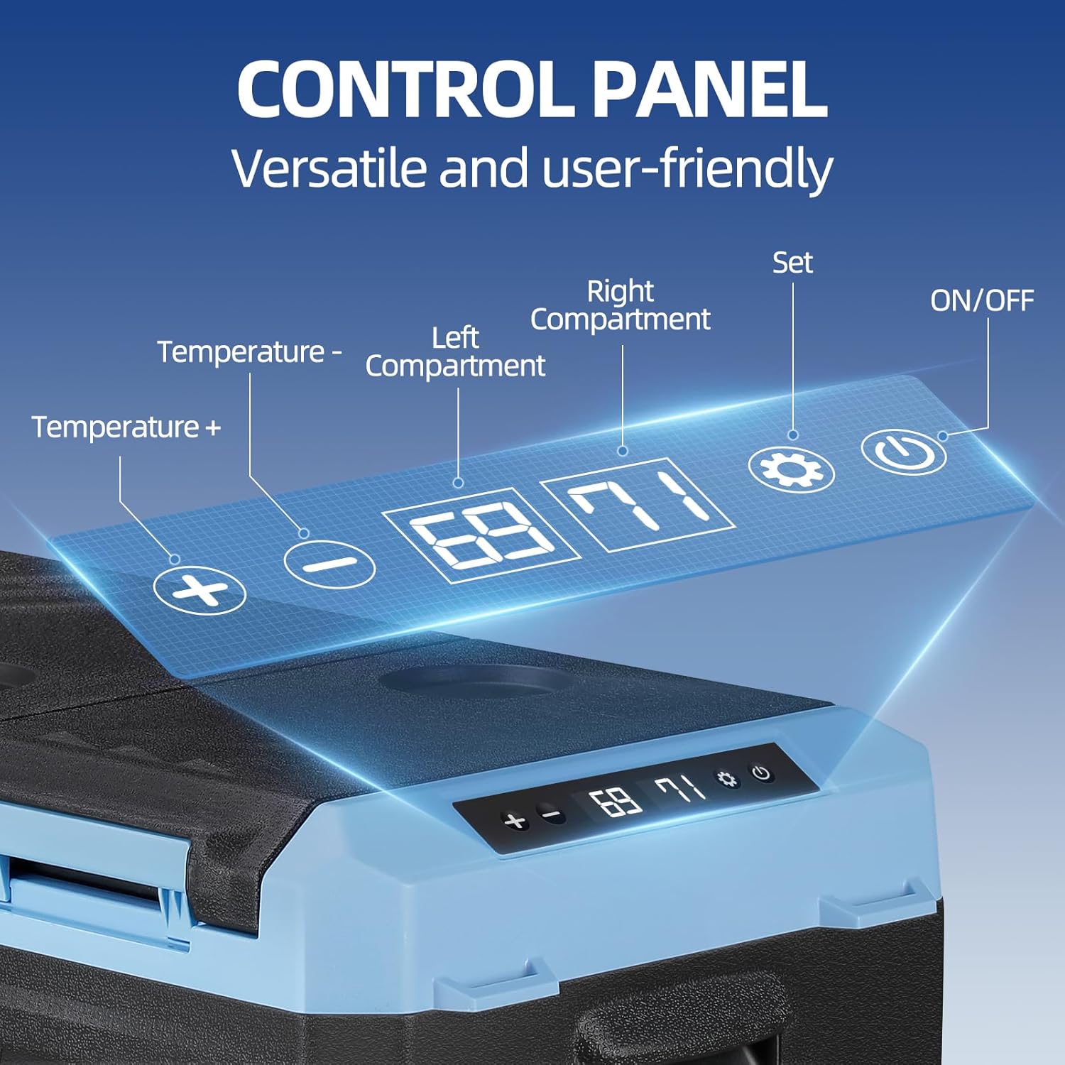 - Smart LED Touch Control and Quiet Operation Digital touchscreen panel allows easy temperature control and Fahrenheit/Celsius switching. Interior soft LED lights turn on automatically when the lid opens. ECO mode uses less than 25W, MAX mode under 1kWh per day. Operates quietly at 45dB. Three-level battery protection (H / M / L) prevents vehicle battery drain, overload, and short circuit. Perfect for semi-trucks, RVs, SUVs, campers, vans, boats, and more.