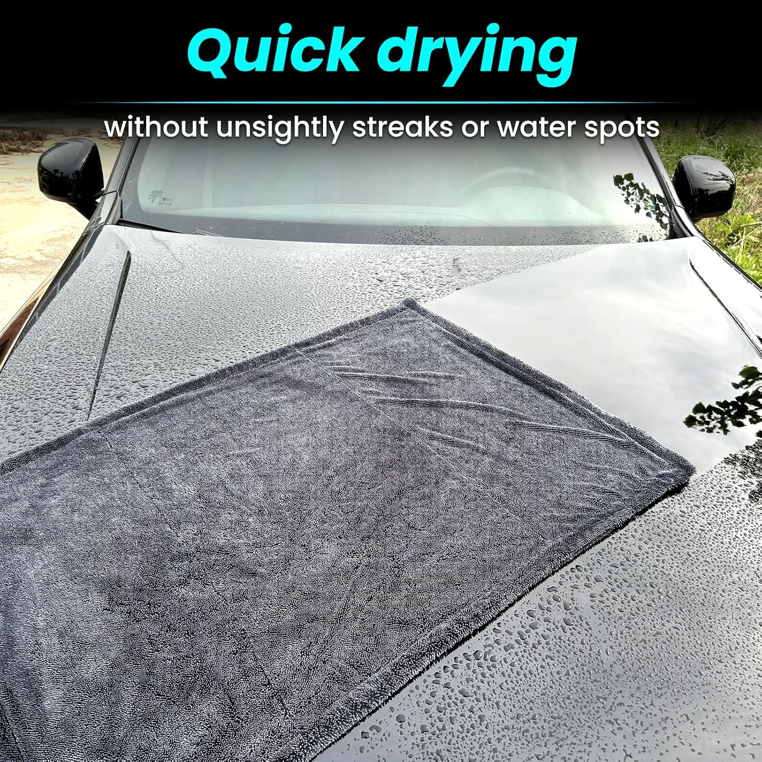 - Ultra absorbent:This car wash towels with Twisted-Loop Technology,thickness 1300 GSM,effortlessly soaking up water without unsightly streaks or water spots,It's like magic,you can dry an entire car in one pass,reduces drying time by more than half