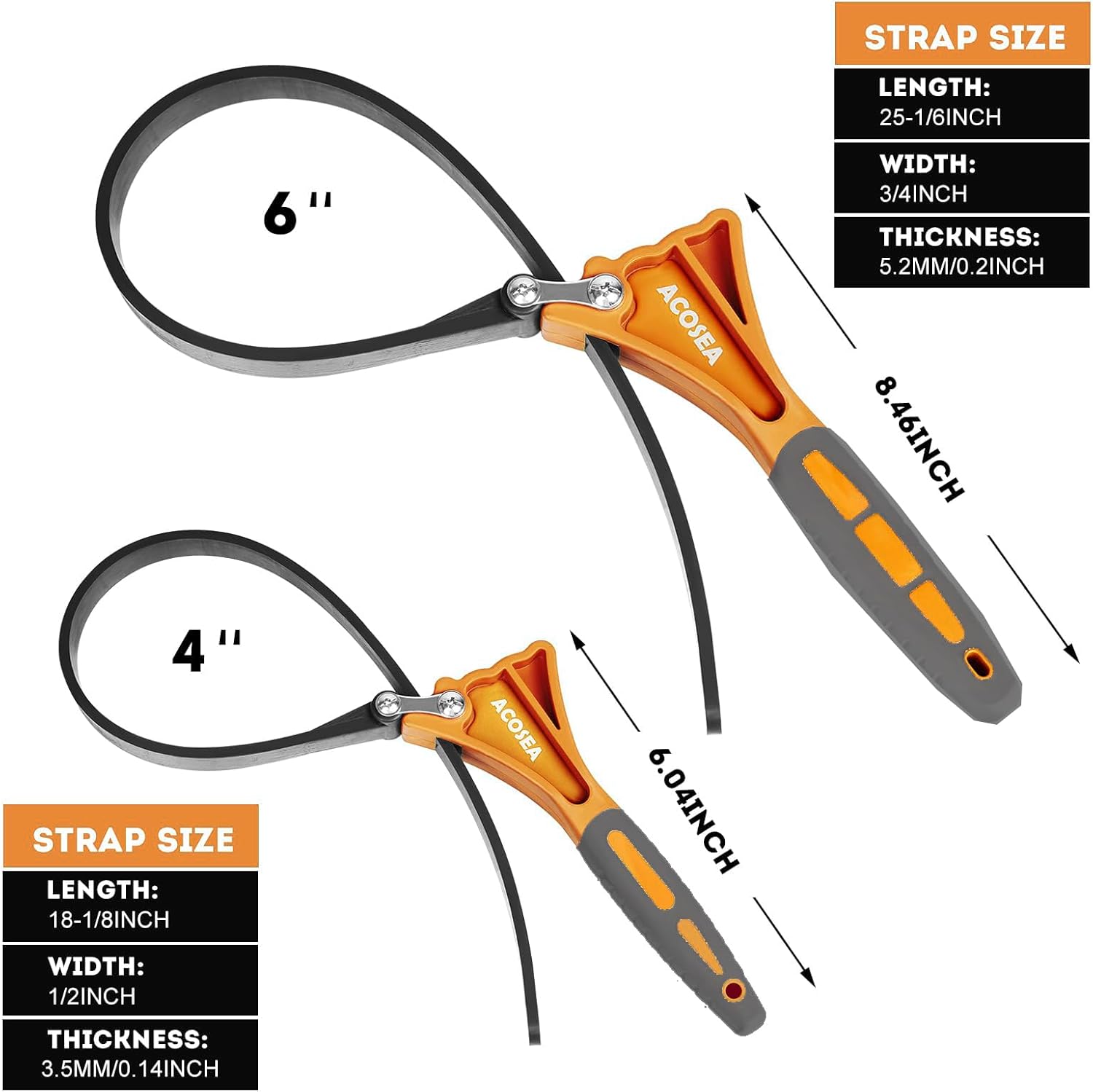 - 【Professional Design】The strap of oil/water filter wrench is adjustable which can be used in different shaped items,the small has max.diameter 4",the large has max.diameter 6".